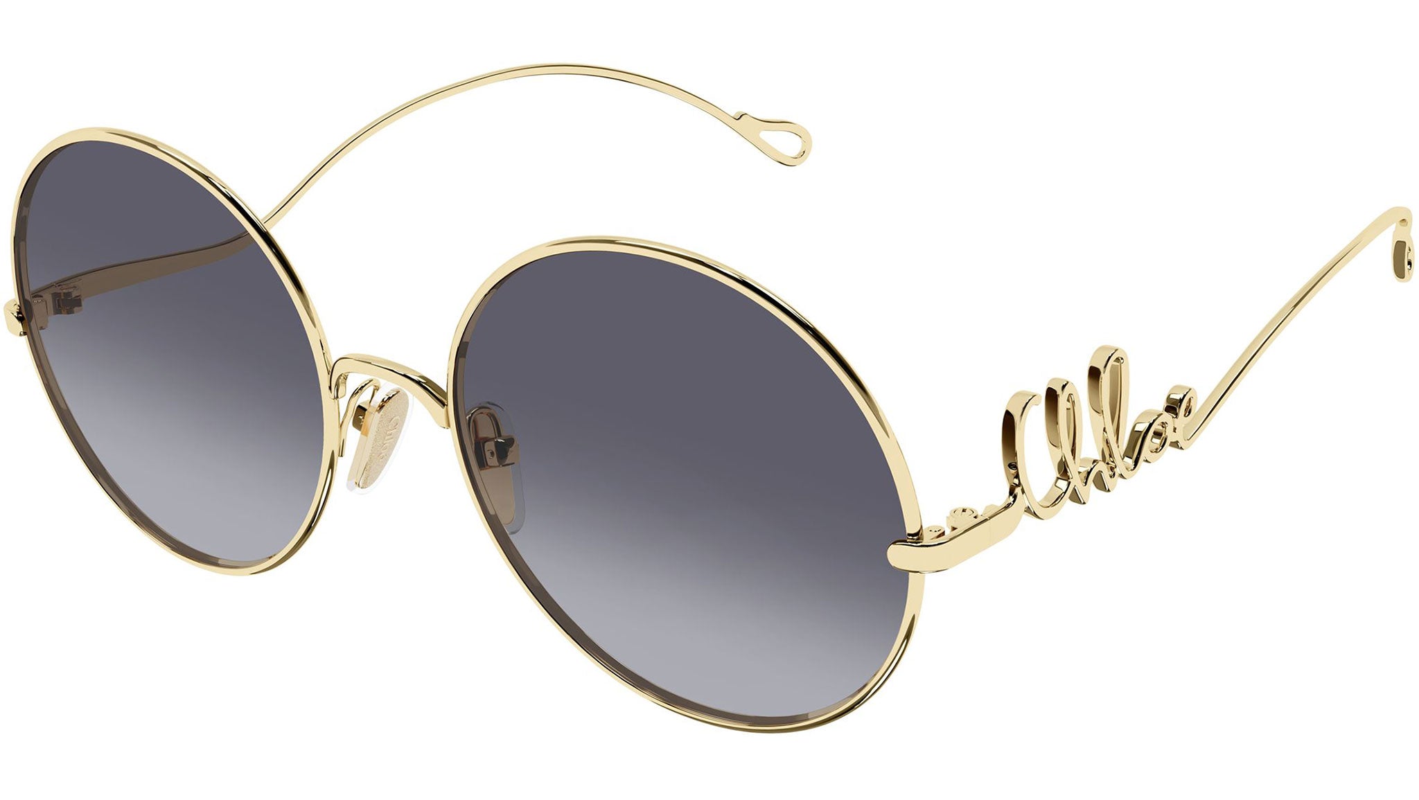 Chloé CH0372S 004 sunglasses for women, featuring shiny endura gold panthos metal frame and gradient violet bio nylon lenses. Brand line: Chloé. Style code: CH0372S. Color code: 004. Made in Japan. Authorized Chloé Eyewear online reseller. Your glasses will include the original case and accessories and are covered by a 12-month global warranty.