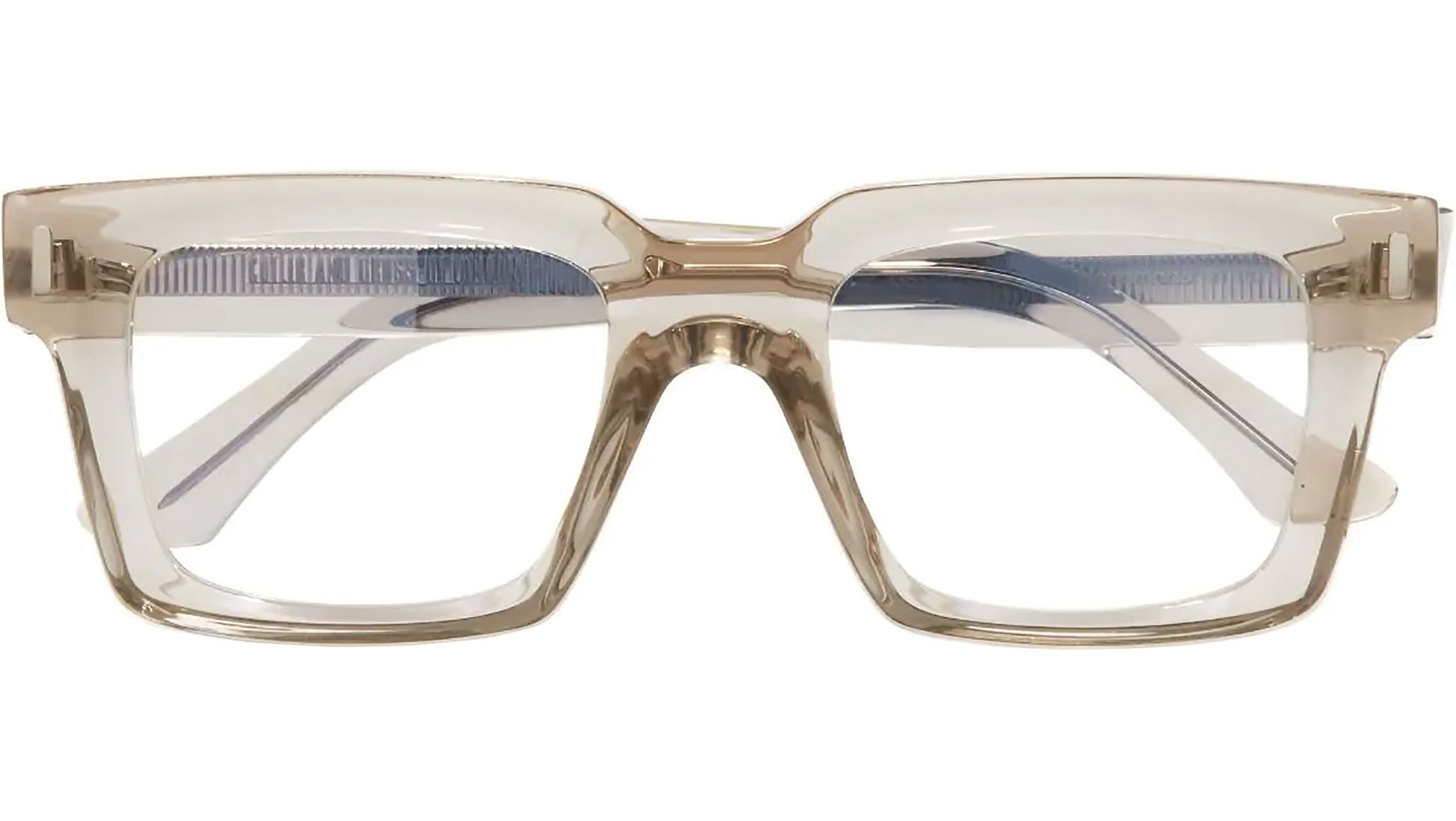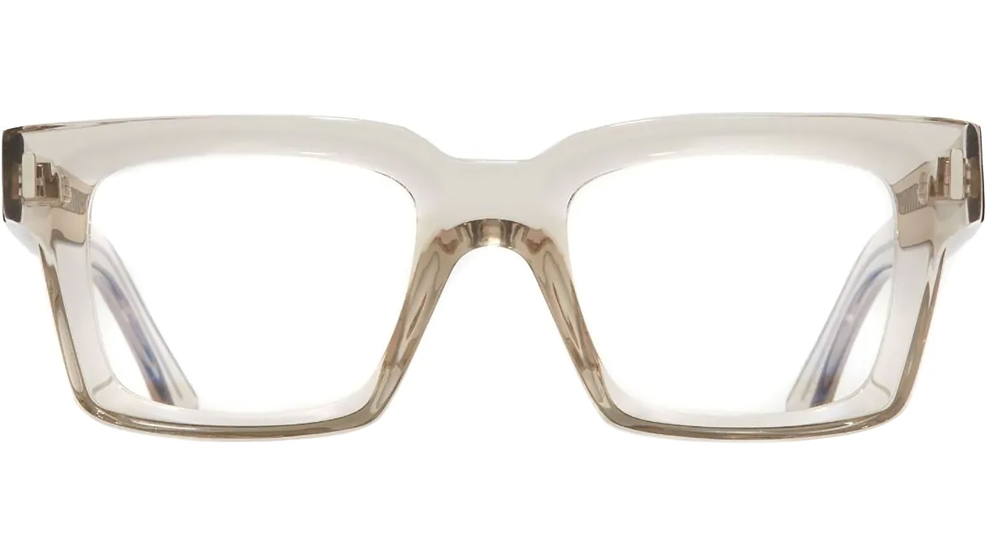 Cutler and Gross 1386 17 glasses for men and woman, featuring sand crystall squared acetate frame and demo lenses. Cutler and Gross 1386 optical glasses offer a modern interpretation of classic American acetate designs from the 1950s, featuring a robust 9mm frame enhanced by vintage pins and intricate interior and exterior milling for added sophistication. Notable features include 1950s-style frontal and temple pins, durable 5-barrel hinges, and a fretboard core wire for structural integrity. The gold-foil logo on the inner temple signifies quality craftsmanship. Handcrafted in Italy, these glasses exemplify the meticulous attention to detail characteristic of Cutler and Gross. Brand line: Opticals. Style code: 1386. Color code: 17. Authorized Cutler and Gross online reseller. Your glasses will include the original case and accessories and are covered by a 12-month global warranty.