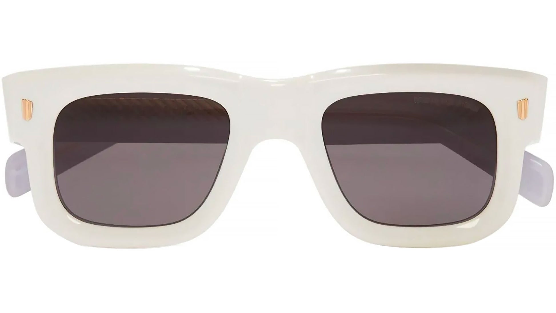 Cutler and Gross 1402 Sun 04 White Ivory. The 1402 is a bold square frame which references silhouettes from our own 1980s archive, milled from 10mm thick acetate but with an undersized construction to give this retro looking style a modern edge. This frame represents the past and the future of Cutler and Gross