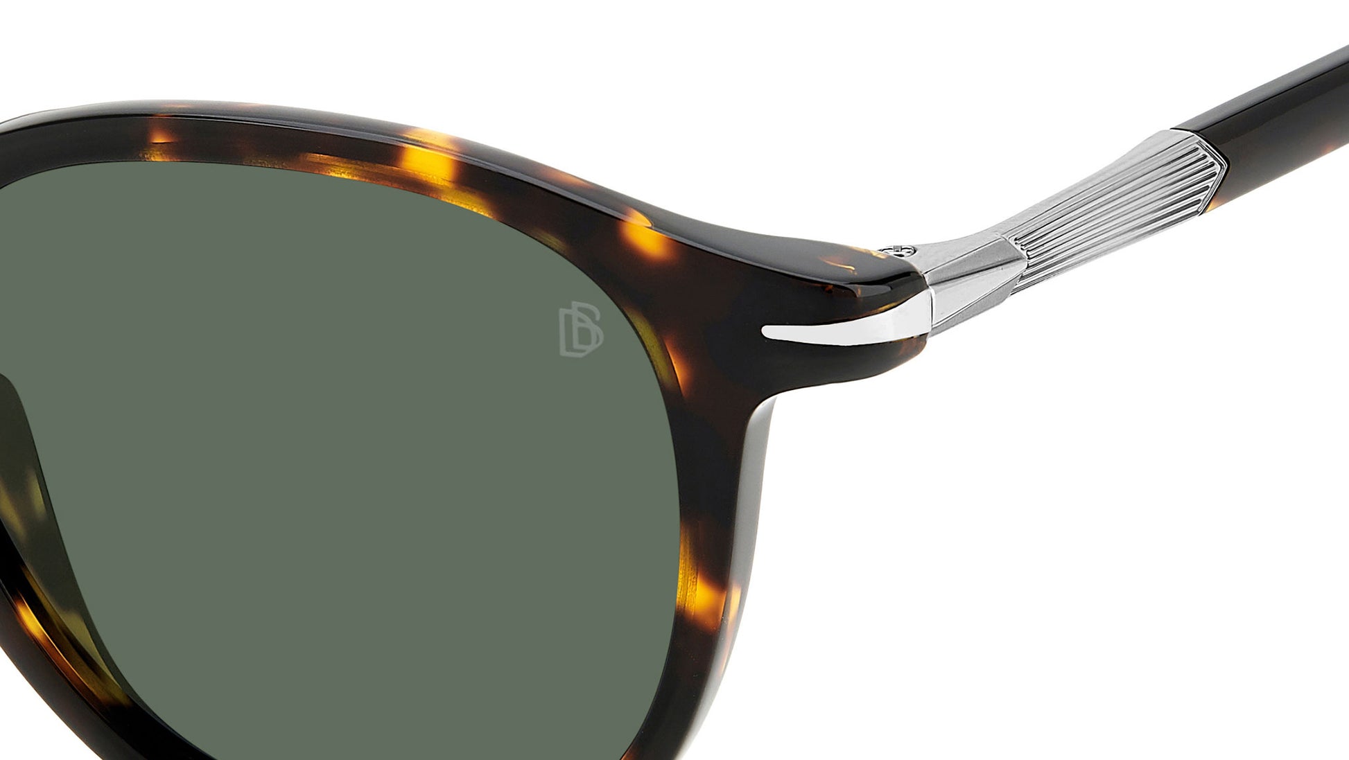 David Beckham sunglasses model DB 1114/S color code 3MA O7 havana ruthenium. Fine, elegant and sophisticated, these David Beckham sunglasses were inspired by dandy men's accessories: resting on adjustable nose pads, the unique slender acetate frames were designed for those who love vintage style. The brand is present on the temples thanks to the iconic rhombus (a stylised interpretation of wings that symbolises freedom), the chiselled metal core, the David Beckham wordmark, and the unmistakable DB monogram on the comfortable moulded end tips.