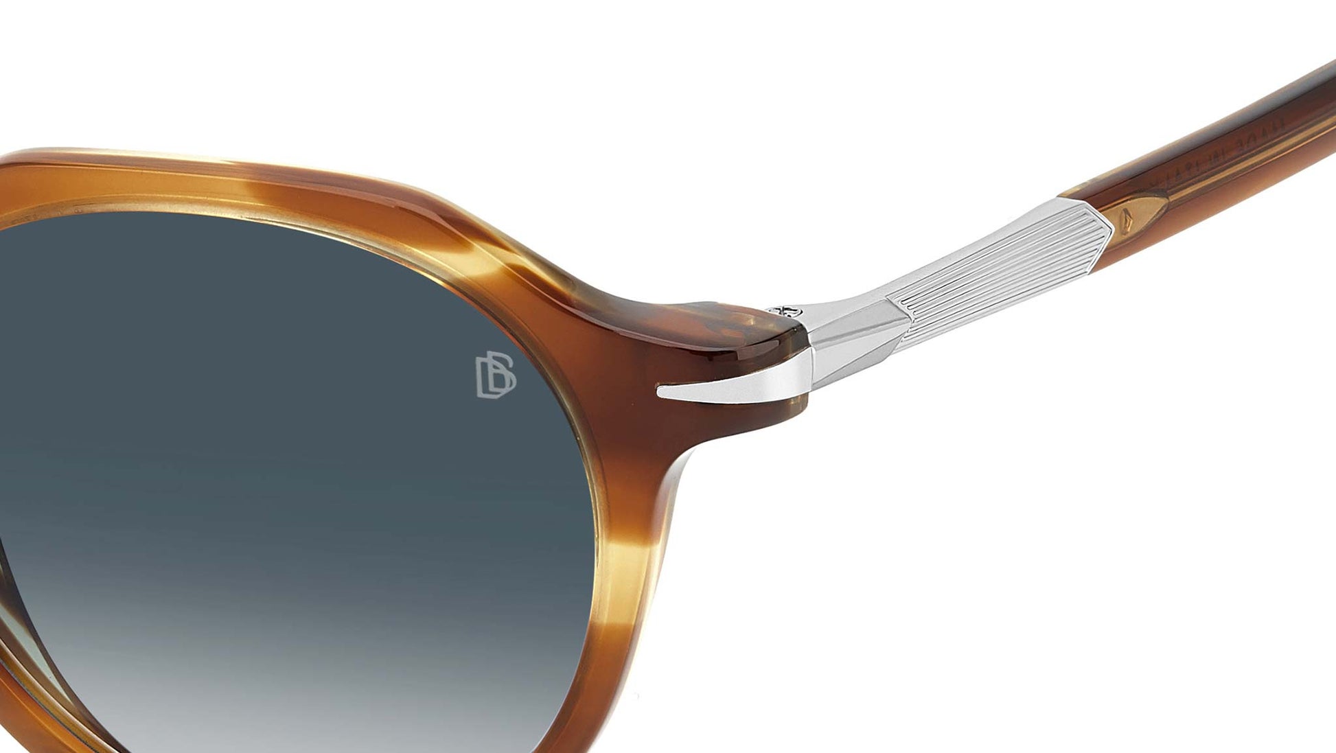 David Beckham DB 1171/S EX4 08 sunglasses for men, featuring brown horn panthos acetate frame and dk blue shaded lens. Whether for their vintage allure or their ability to be styled with any look, these Eyewear by David Beckham sunglasses transcend fleeting trends. The Timeless Icons collection expands with the introduction of new shapes, expressed through distinctive temples which unite metal and acetate. For functional and aesthetic needs, these sunglasses come in versions with photochromic or mirrored lenses and they can be fitted with prescription lenses. The perfect accessory for those who value refined details and timeless elegance. Brand line: Timeless Icons. Style code: 207746. Color code: EX4 08. Authorized David Beckham online reseller. Your glasses will include the original case and accessories and are covered by a 12-month global warranty.