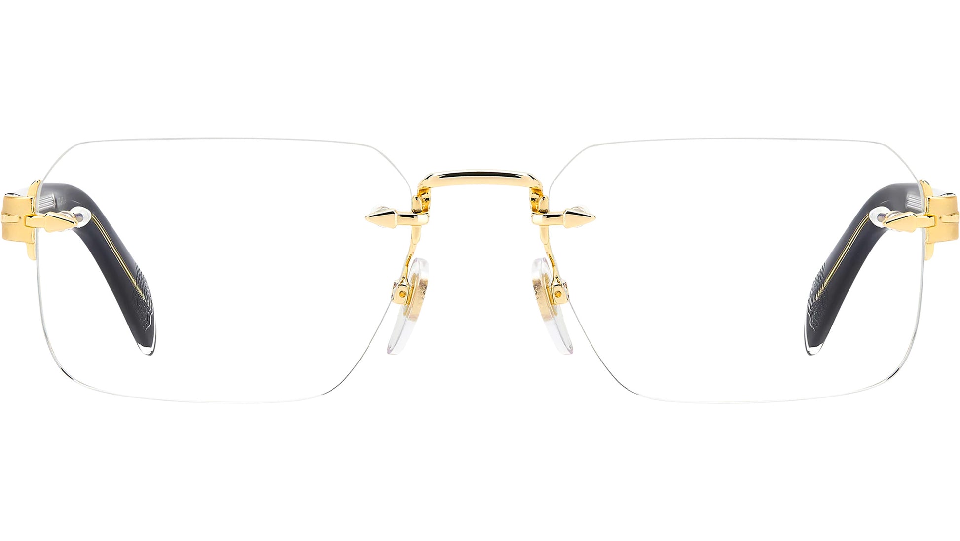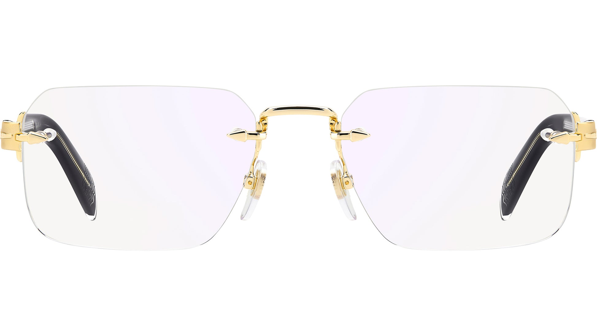 David Beckham DB 7116 RHL glasses for men, featuring gold black rectangular metal frame and blue mirror lenses. David Beckham has interpreted the latest trends, carefully crafting these rimless eyeglasses. The screws on the lenses become small metal arrows, fusing practicality and the aesthetics that define the brand. The lugs that connect to the temples are also in metal, decorated by a rhombus detail to conceal the flexible hinges. The brand’s name trims the acetate temples, and the monogram is found on the end tips. Brand line: Style Pioneer. Style code: 107769. Color code: RHL. Authorized David Beckham online reseller. Your glasses will include the original case and accessories and are covered by a 12-month global warranty.