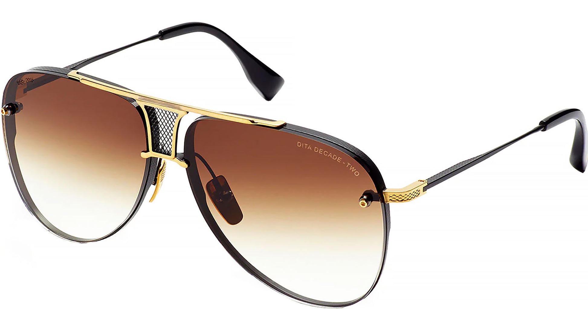 DITA celebrates its 20-year legacy as an industry trailblazer with the unveiling of its most groundbreaking range yet: the Decade-Two. This high-octane reboot of the classic aviator frame underscores DITA's technical advancements over the past decade. A seamless blend of past and future, of classic and innovation, the Decade-Two frame boasts a sleek silhouette, complemented by a mesh metal bridge and two-base milled-mounted lenses that infuse a coastal flair into this masculine attire. Signature details, such as DITA's diamond pressing and flexible nose pads, are elegantly crafted from luxurious materials like titanium and 18-carat gold plating.