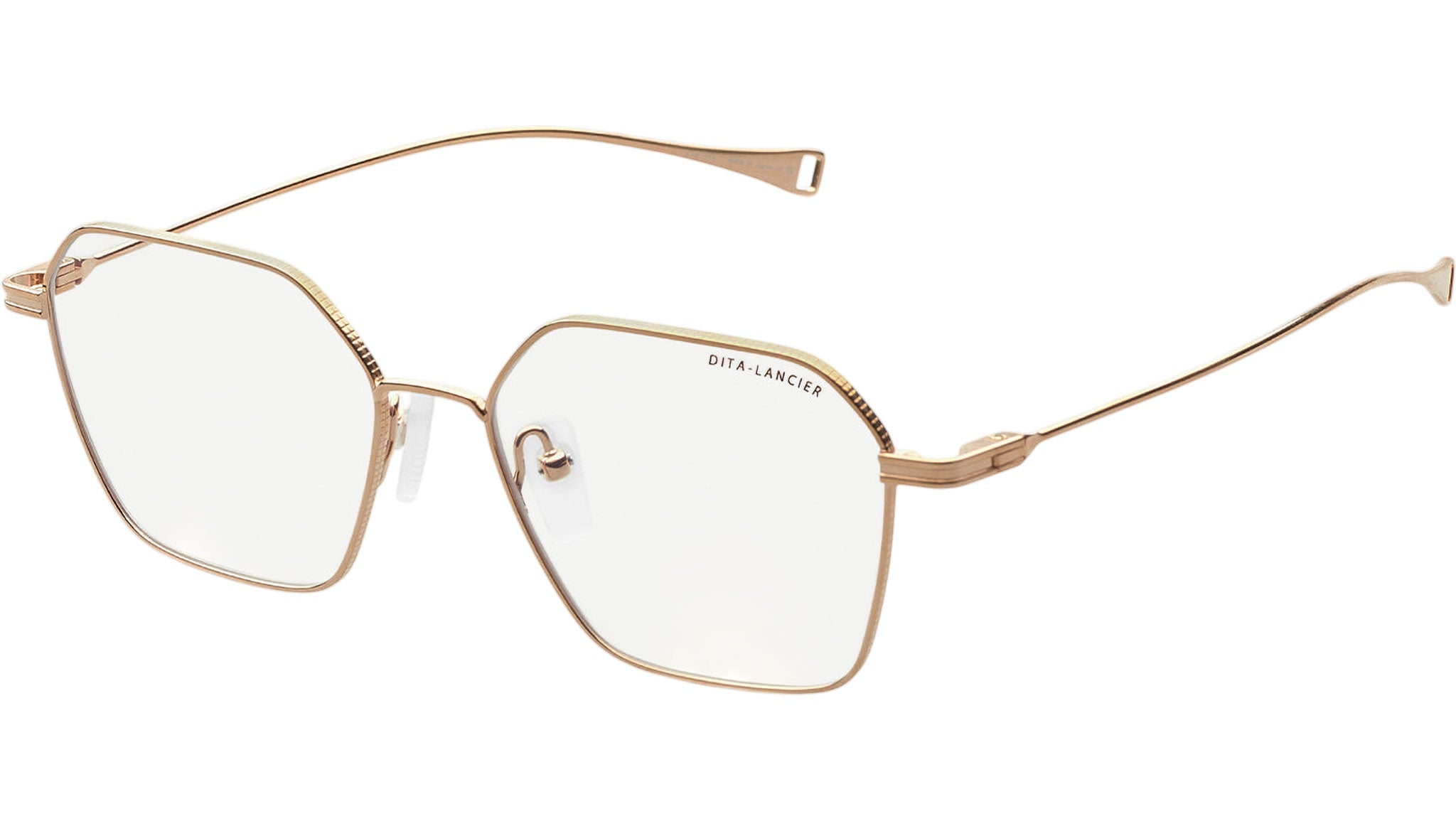 The Dita Lancier LSA-116 optical frame expresses a refined retro character inspired by the fashion history of California, reinterpreted through a precise and contemporary titanium construction. Its distinctive hexagonal silhouette introduces a subtle period-inspired accent, while the lens rim is enhanced by elegant coin-pressed detailing that underscores the frame’s technical sophistication. Crafted with high-quality titanium frame and temples, the design is completed by swadged round-to-flat profile temples with integrated accessory end-tips and adjustable double-injected soft-touch anti-slip nose pads for elevated comfort and stability. Equipped with lenses offering 100% UVA and UVB protection, anti-reflective coating, and a blue light filter, the LSA-116 delivers visual performance with polished everyday appeal. Handcrafted in Japan and available in gold sand, pink gold, and silver, it is presented with a recycled display box, a microfibre lens cleaning cloth, a vegan-suede protective case, and a warranty booklet.