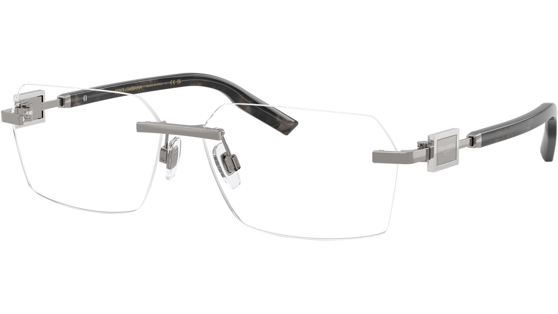 Dolce & Gabbana DG 1361 04 glasses for men, featuring gunmetal rectangular metal frame and demo lens. Adjustable nosepads. Brand line: Smart. Style code: 0DG1361. Color code: 04. Made in Italy. Authorized Dolce & Gabbana online reseller. Your glasses will include the original case and accessories and are covered by a 12-month global warranty.
