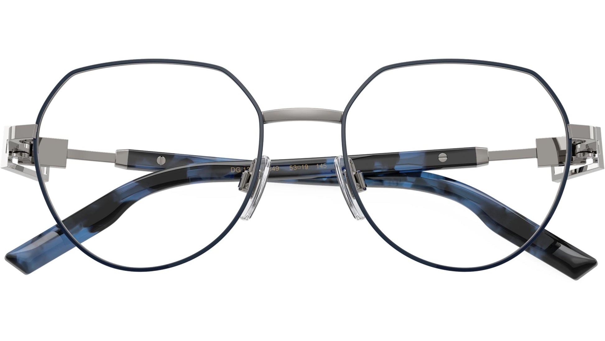 Dolce & Gabbana DG 1362 1349 glasses for men, featuring blue panthos metal frame and demo lens. Adjustable nosepads. Brand line: Smart. Style code: 0DG1362. Color code: 1349. Made in Italy. Authorized Dolce & Gabbana online reseller. Your glasses will include the original case and accessories and are covered by a 12-month global warranty.