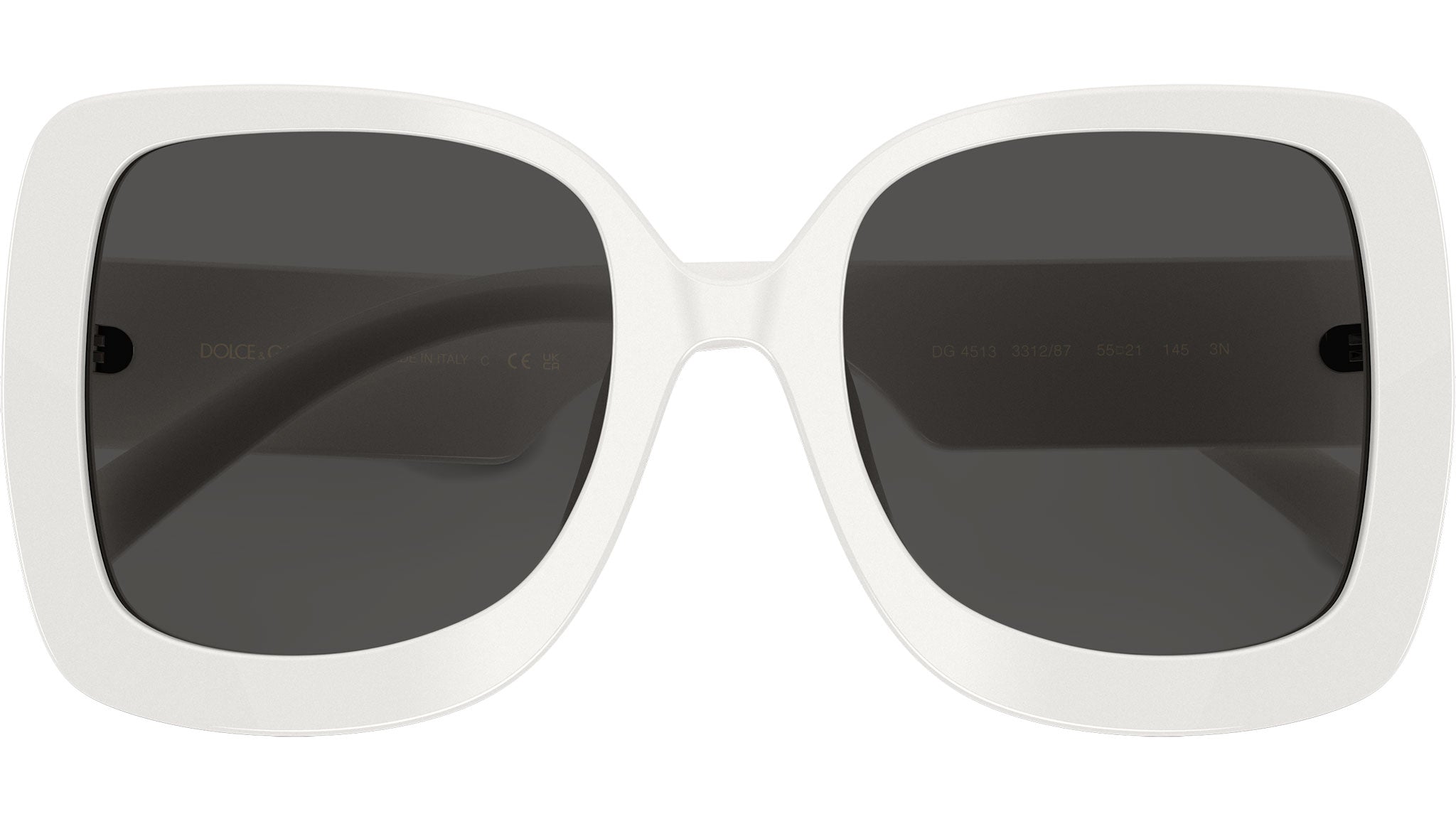 Dolce & Gabbana DG 4513 331287 sunglasses for women, featuring white squared acetate frame and dark grey bio polyamide lenses. Universal fit. Brand line: Dna. Style code: 0DG4513. Color code: 331287. Made in Italy. Authorized Dolce & Gabbana online reseller. Your glasses will include the original case and accessories and are covered by a 12-month global warranty.