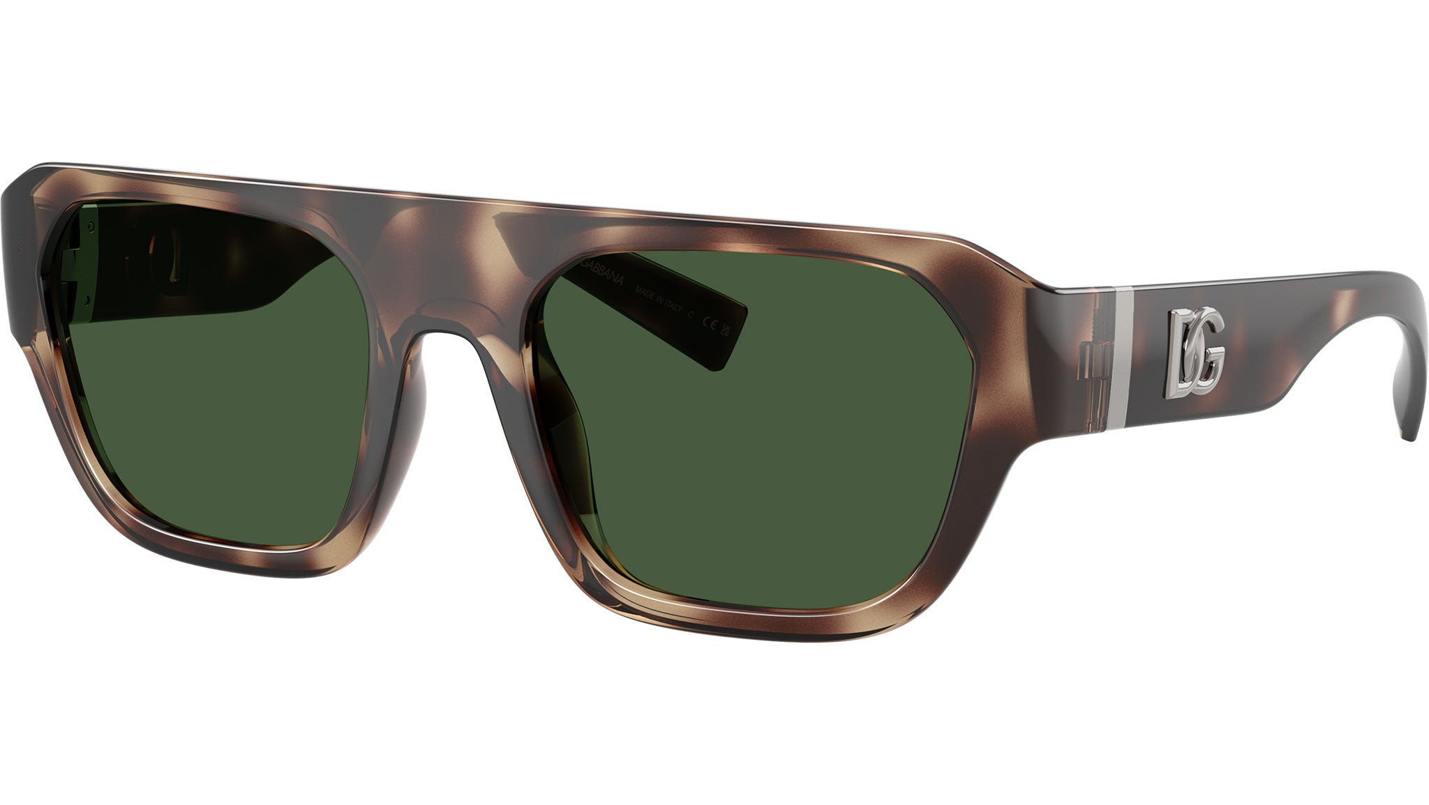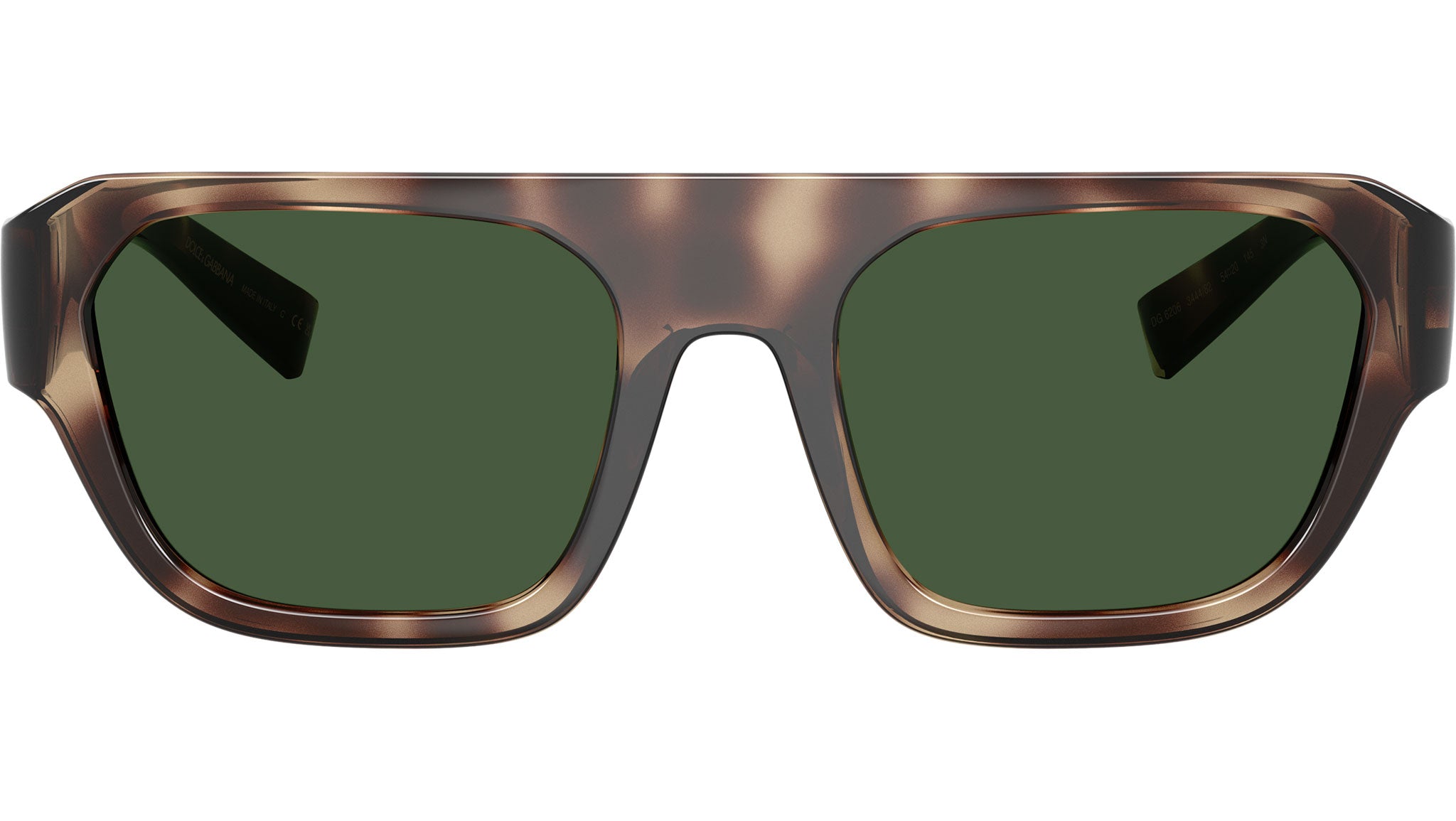 Dolce & Gabbana DG 6206 344482 sunglasses for men, featuring brown havana squared injection frame and dark green bio polyamide lenses. Universal fit. Brand line: Dna. Style code: 0DG6206. Color code: 344482. Made in Italy. Authorized Dolce & Gabbana online reseller. Your glasses will include the original case and accessories and are covered by a 12-month global warranty.