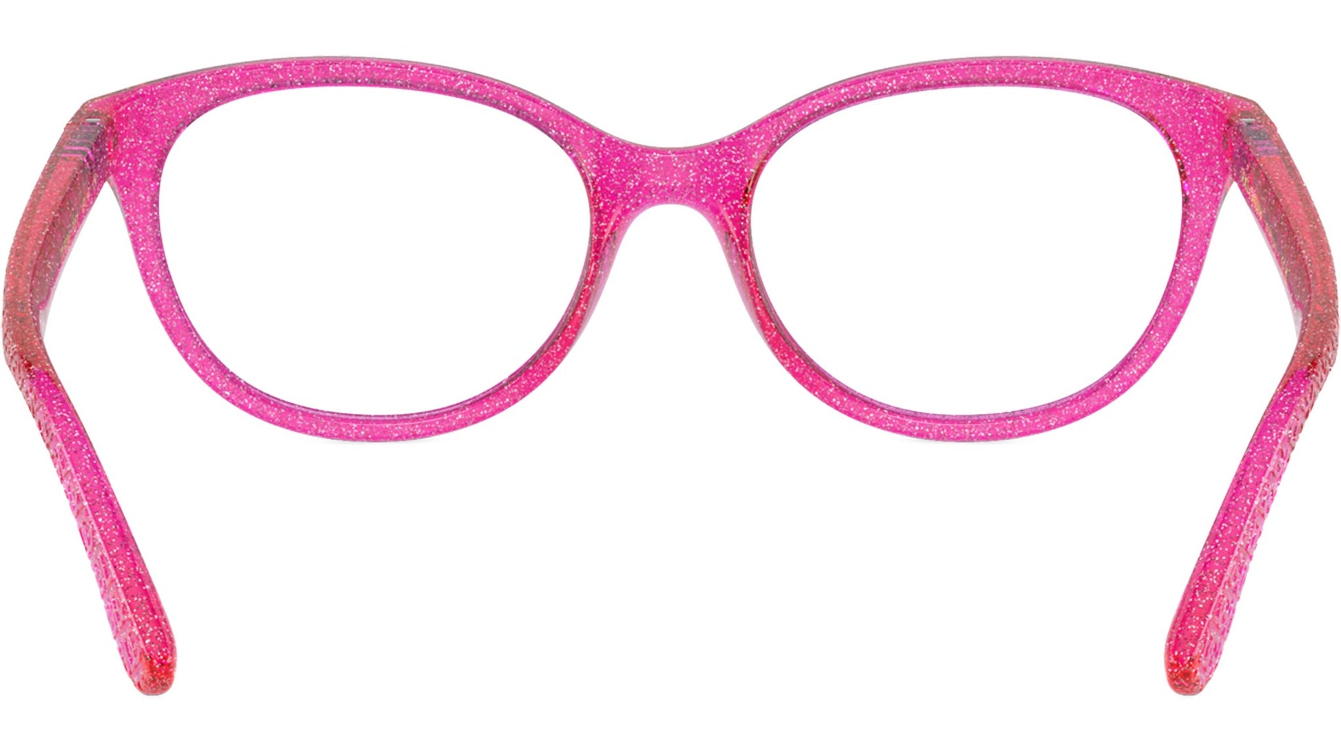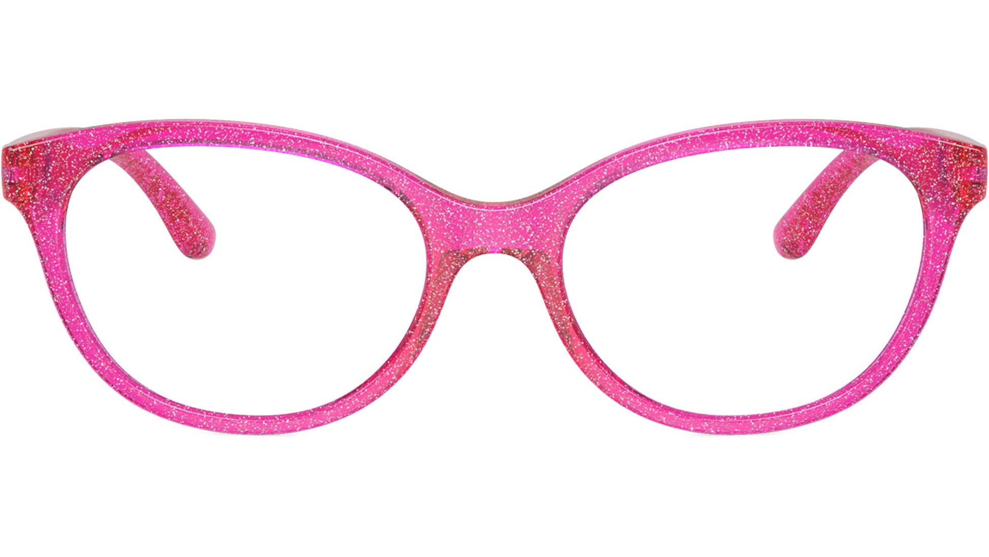 Dolce & Gabbana Kids DX 5096 3351 glasses, featuring pink glitter butterfly injection frame and demo lens. High bridge fit. Brand line: Active. Style code: 0DX5096. Color code: 3351. Made in Italy. Authorized Dolce & Gabbana Kids online reseller. Your glasses will include the original case and accessories and are covered by a 12-month global warranty.