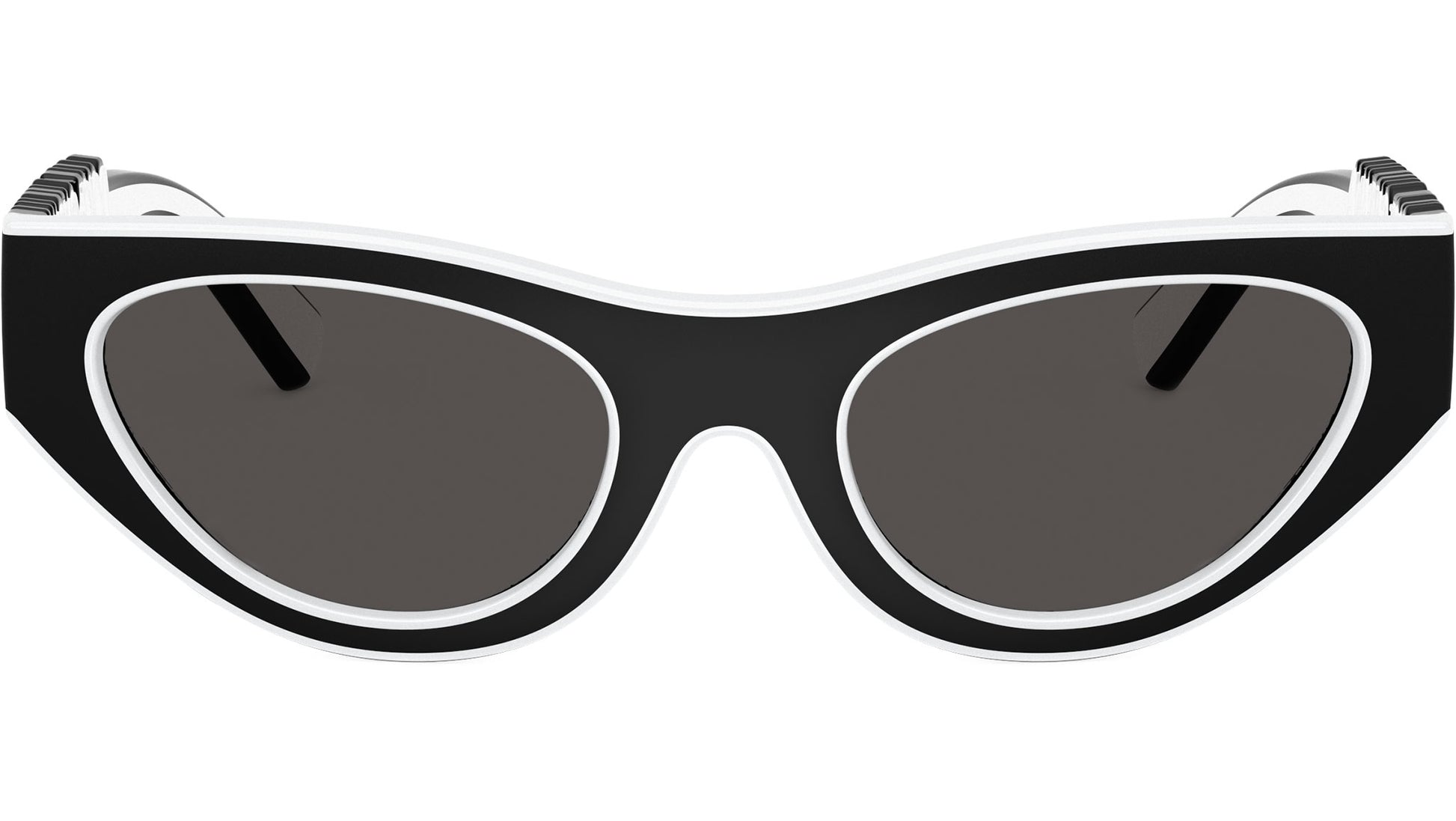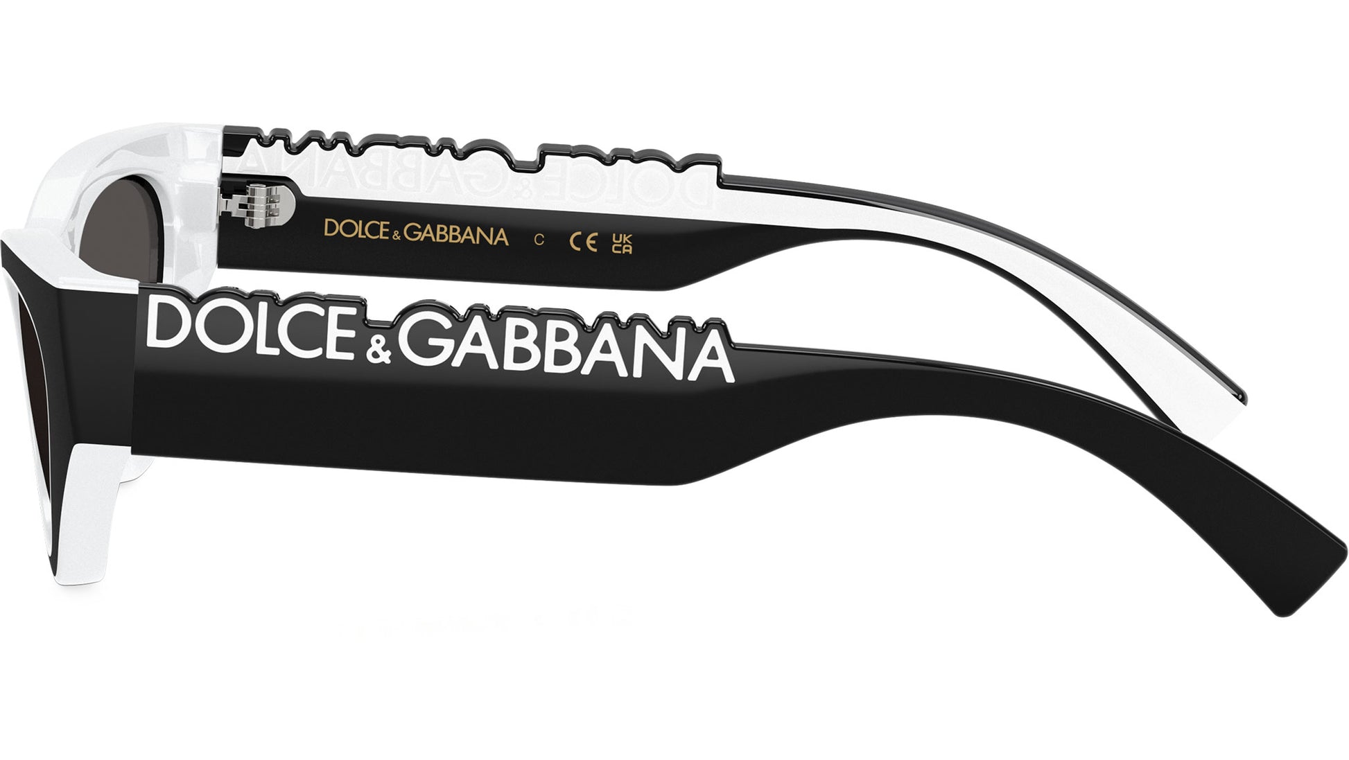 Dolce & Gabbana Kids DX 6012 345787 sunglasses, featuring black / white cat eye injection frame and dark grey polycarbonate lenses. Universal fit. Brand line: Dna. Style code: 0DX6012. Color code: 345787. Made in Italy. Authorized Dolce & Gabbana Kids online reseller. Your glasses will include the original case and accessories and are covered by a 12-month global warranty.