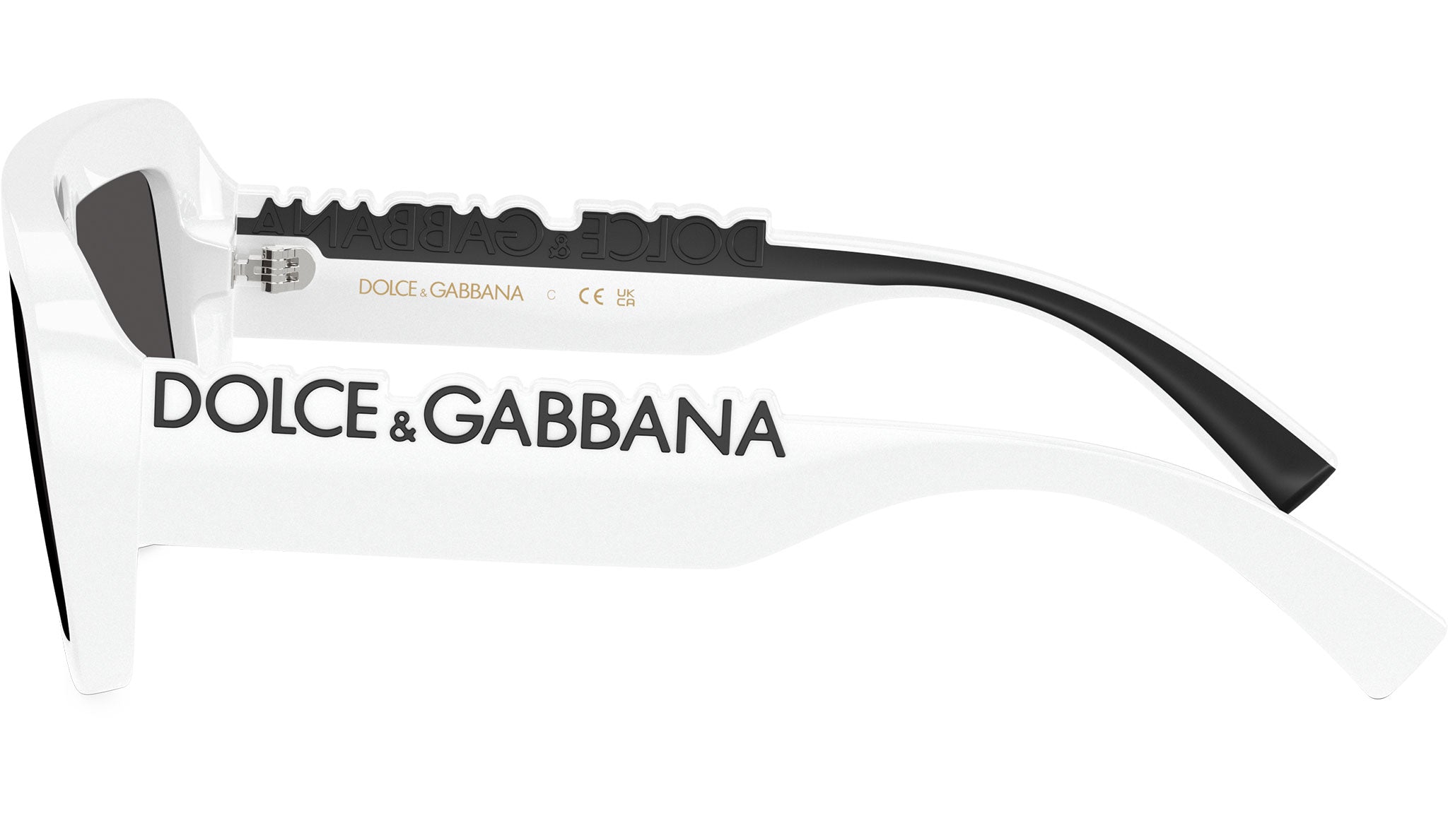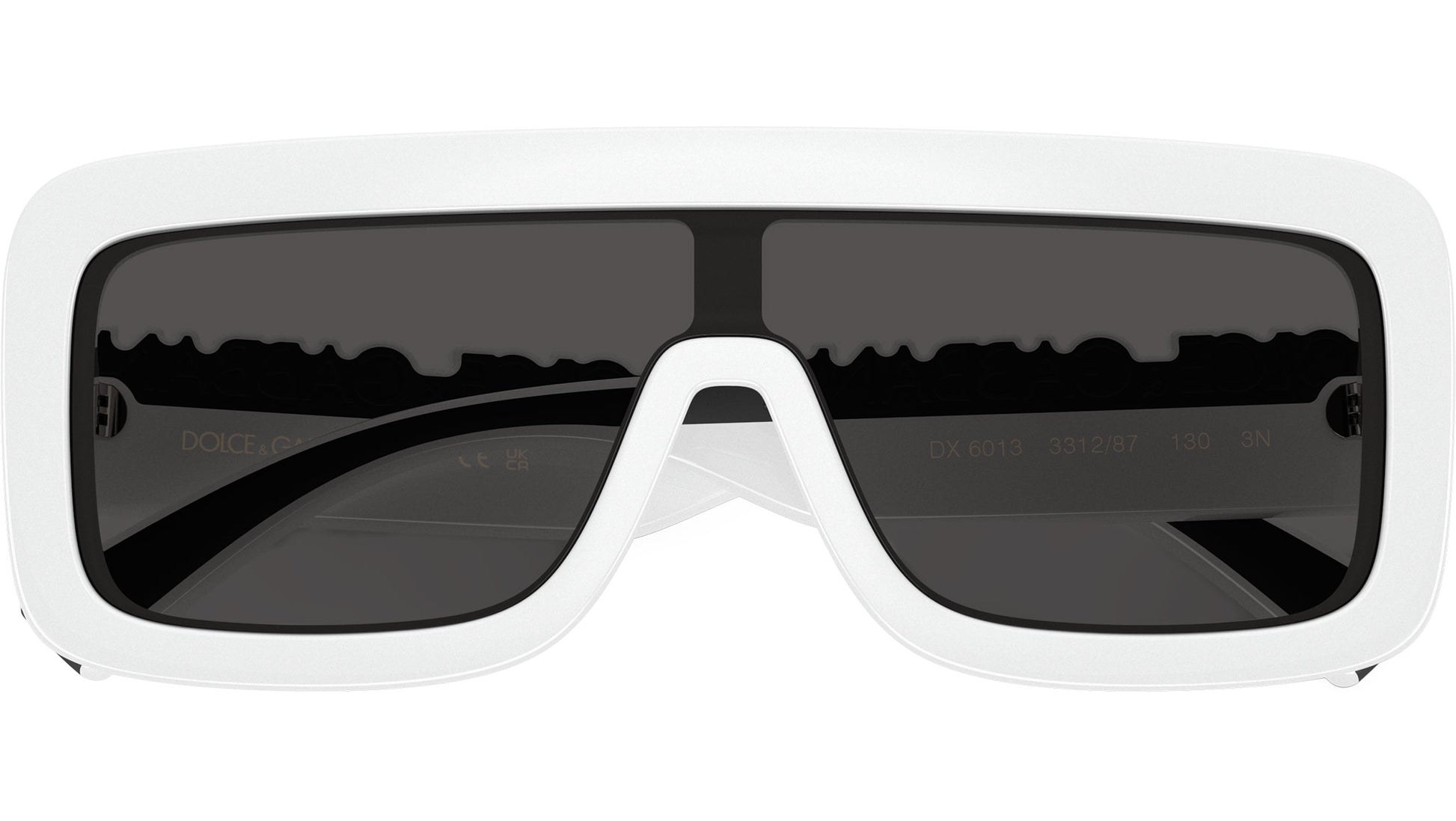 Dolce & Gabbana Kids DX 6013 331287 sunglasses, featuring white rectangular injection frame and dark grey nylon lenses. Universal fit. Brand line: Dna. Style code: 0DX6013. Color code: 331287. Made in Italy. Authorized Dolce & Gabbana Kids online reseller. Your glasses will include the original case and accessories and are covered by a 12-month global warranty.