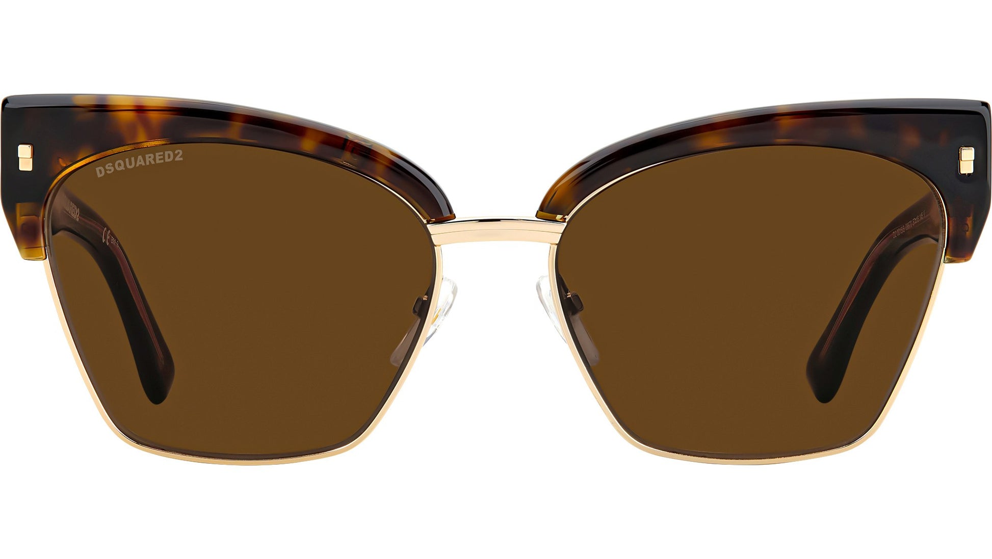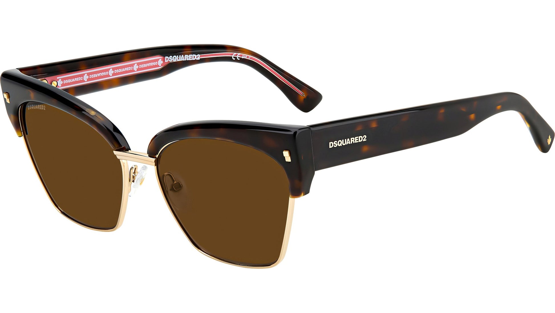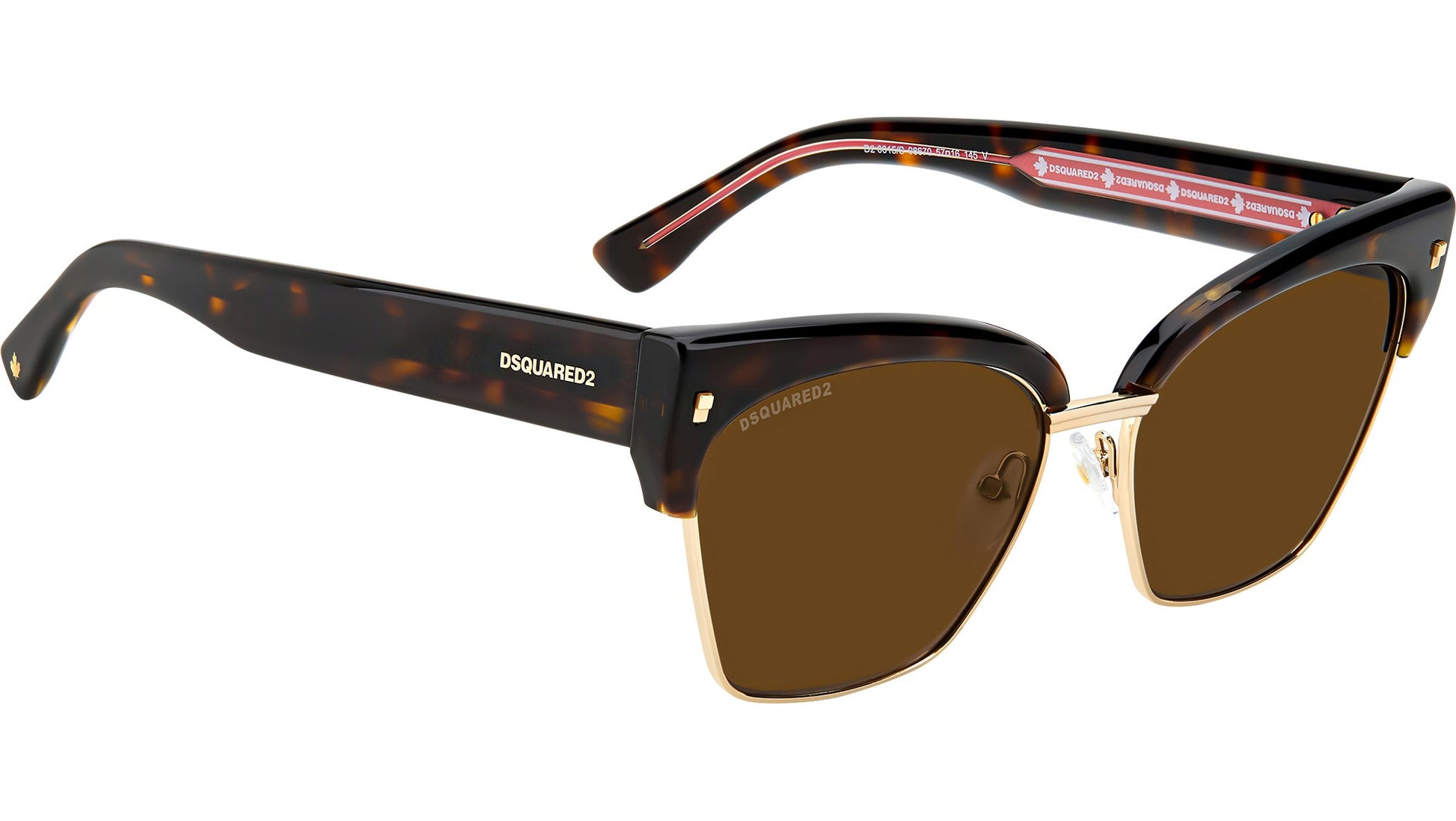 Dsquared2 D2 0015/S 086 70 sunglasses for women, featuring havana cat eye metal frame and brown lenses. These sunglasses are best described as vintage yet timeless: the uniquely-shaped contours are complemented by a red and white Dsquared2 logo on the metal core, inspired by the labels used for the clothing line. The iconic metal rivets on the acetate frames, the sophisticated design of the front in metal with an acetate insert on the top bar, and the maple leaf detail on the end tips convey the spirit of these women’s glasses, made to embody the inimitable, unmistakable style of Dsquared2. Brand line: Refined. Style code: 204954. Color code: 086 70. Authorized Dsquared2 online reseller. Your glasses will include the original case and accessories and are covered by a 12-month global warranty.