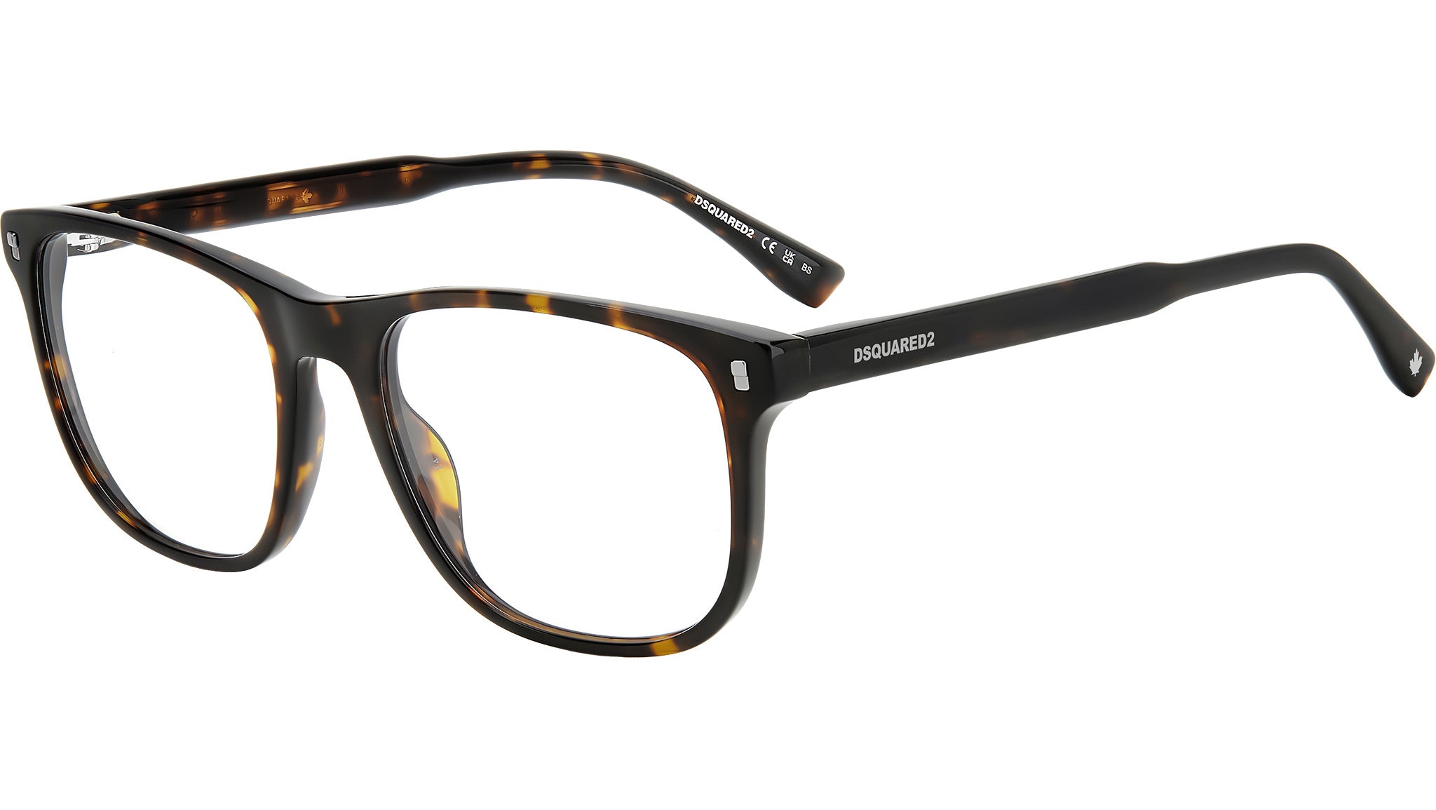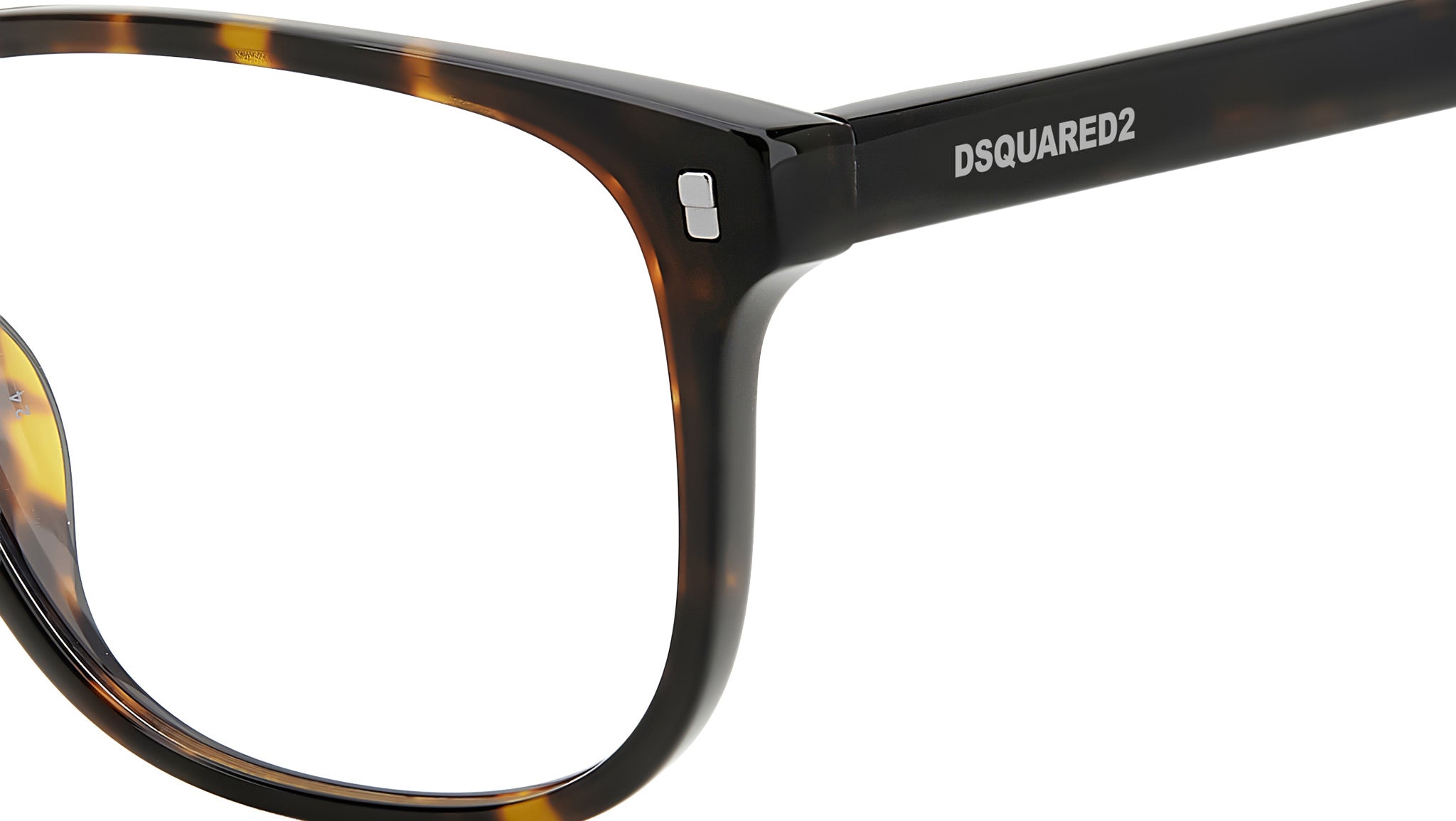 Dsquared2 optical frame model D2 0079 color code 086 havana. These semi-bold eyeglasses have been given a fresh twist thanks to the lighter proportions of the new acetate front. The metal core with the engraved DSQUARED2 'tape' can be seen through the original temples. The brand has also signed these men's glasses with an injected logo on the outer temple near the hinges, and with the must-have maple leaf on the comfortable end tips: distinctive features that convey truly unique design. Authorised Dsquared2 Online Reseller. Your glasses will come including the original case and accessories and will be covered by 12 month global warranty.