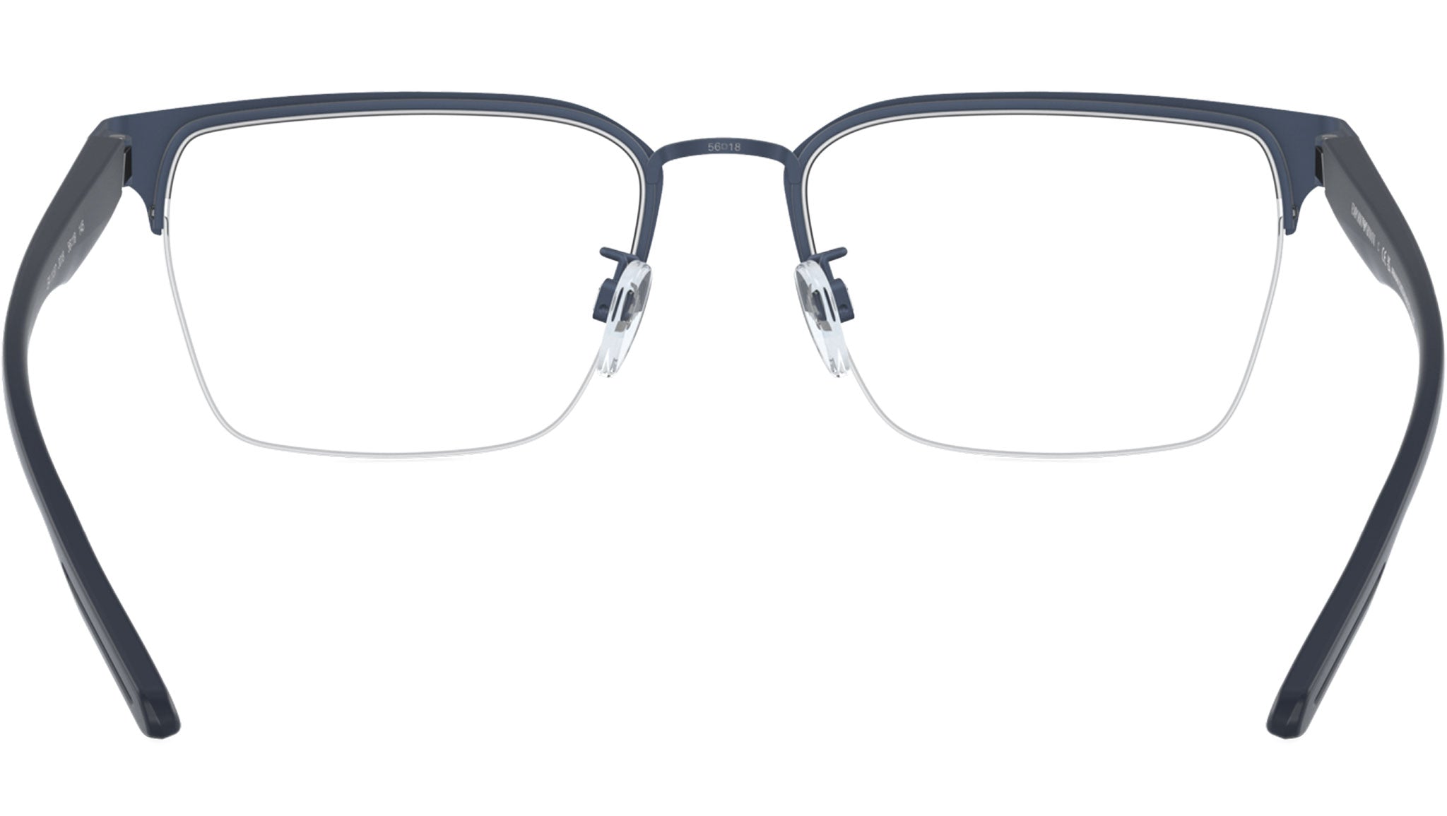 Emporio Armani eyeglasses for men model EA1137 featuring matte blue semi rim metal frame and base 4 curve demo lens. Adjustable Nosepads. Frame line: Runway. Brand code: EA1137. Color code: 3018. Authorised Emporio Armani Online Reseller. Your glasses will come including the original case and accessories and will be covered by 12 month global warranty.