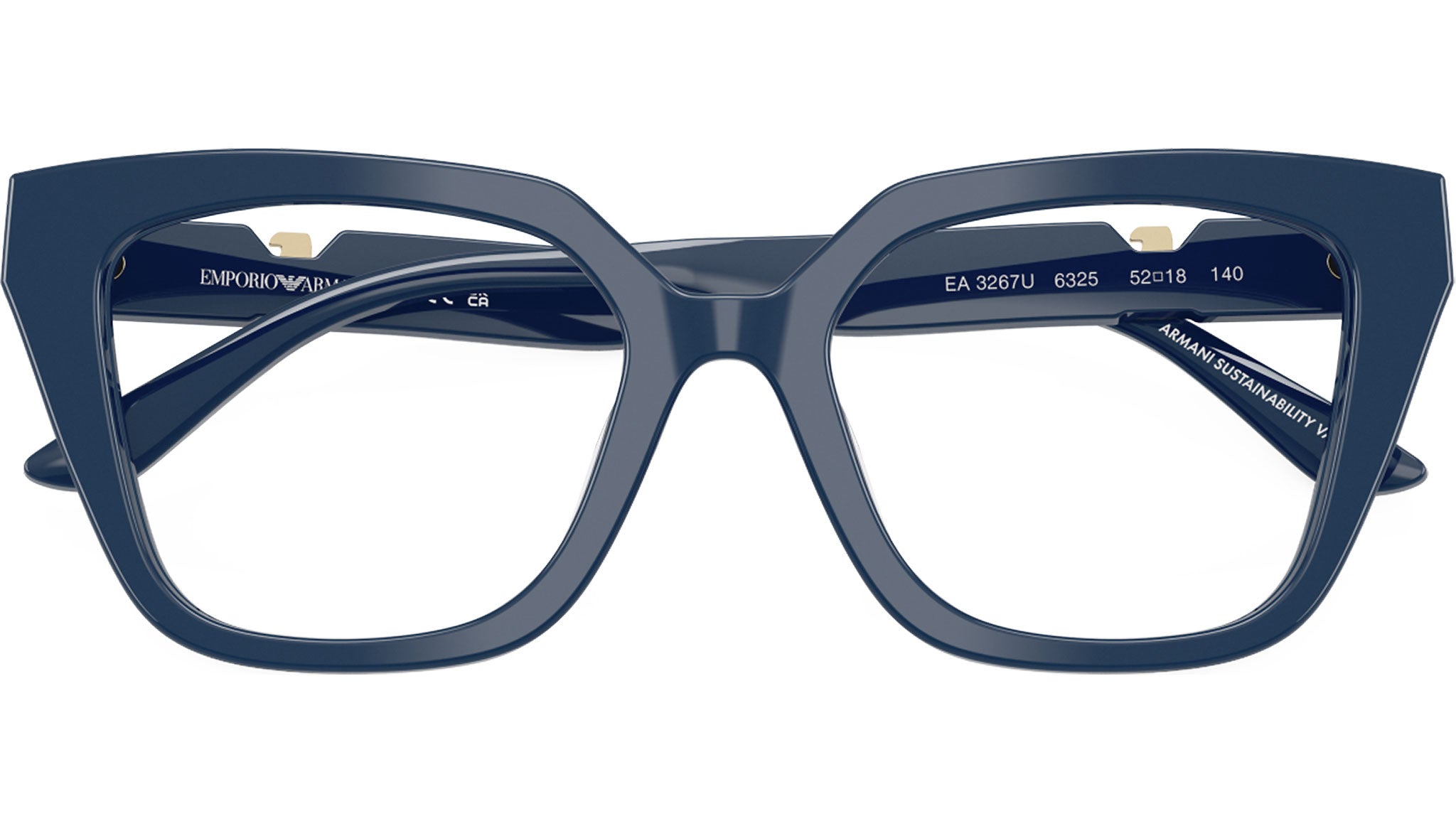 Emporio Armani EA3267U 6325 glasses, featuring shiny blue cat eye acetate frame and demo lenses. Universal fit. Brand line: Modern. Style code: 0EA3267U. Color code: 6325. Authorized Emporio Armani online reseller. Your glasses will include the original case and accessories and are covered by a 12-month global warranty.