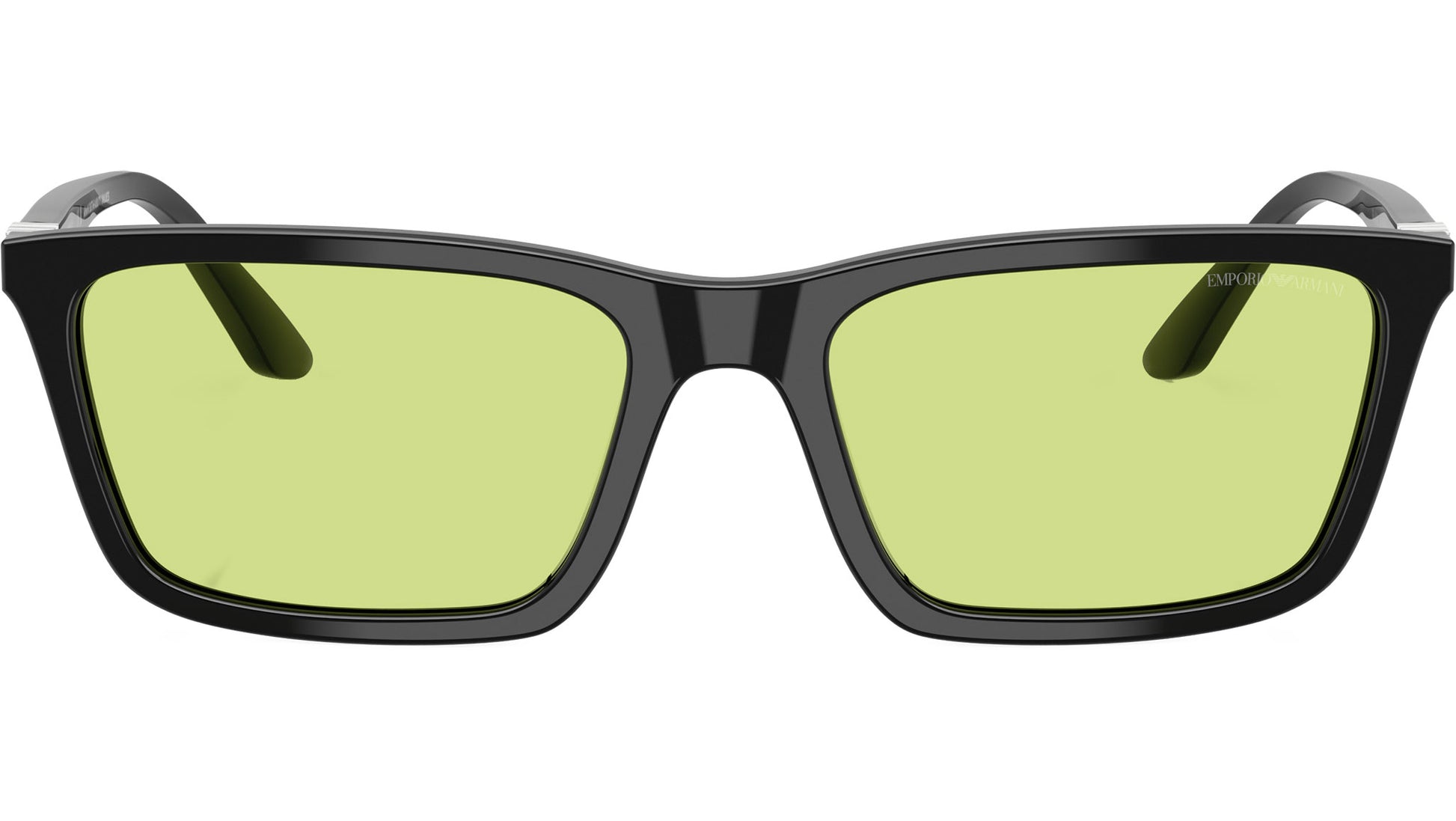 Emporio Armani EA4239U 5017/2 sunglasses, featuring shiny black rectangular acetate frame and green bio polyamide lenses. Universal fit. Brand line: Modern. Style code: 0EA4239U. Color code: 5017/2. Authorized Emporio Armani online reseller. Your glasses will include the original case and accessories and are covered by a 12-month global warranty.