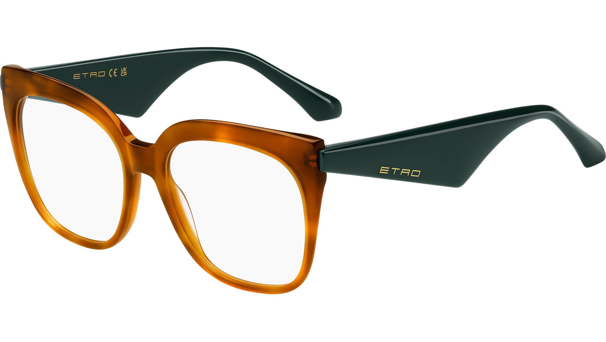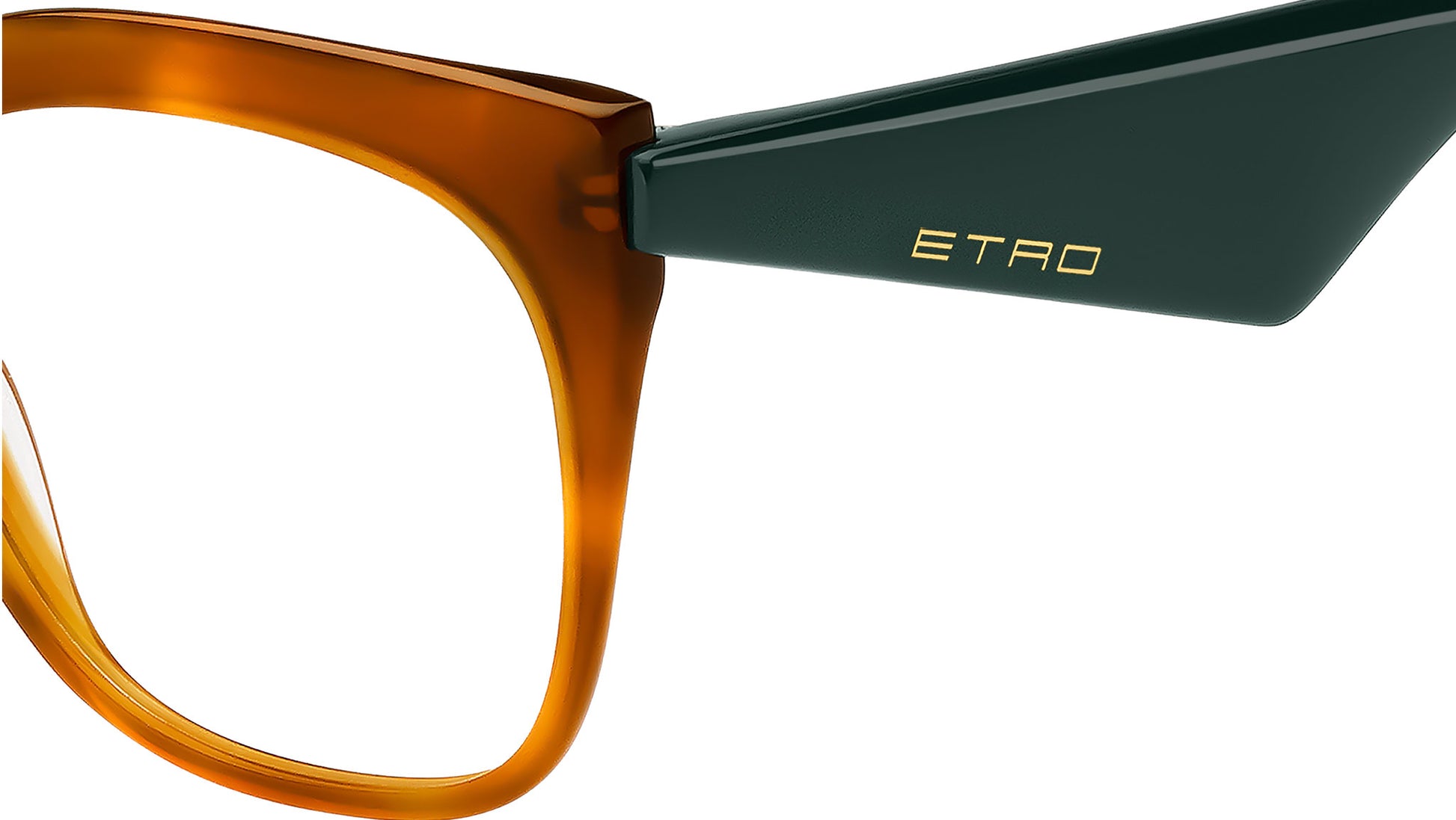 Etro 0047 086 glasses for women, featuring havana rectangular acetate frame and demo lenses. Playful, dynamic and rebellious, the "ETRO Tailoring" eyewear range returns with a renewed edge. These optical glasses explore the collection's theme with their generous volumes and sinuous shapes. Crafted with expert precision from ultra-light acetate, the softly curved profile is complemented by the vintage-inspired triangular temples. The brand's iconic end tips and subtle logo lettering transcend seasons and trends. Brand line: Tailoring. Style code: 108766. Color code: 086. Authorized Etro online reseller. Your glsses will include the original case and accessories and are covered by a 12-month global warranty.