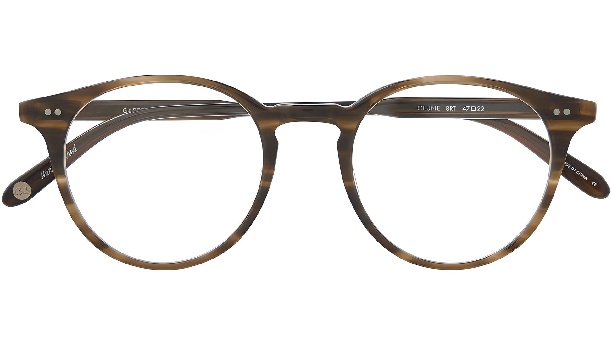 Inspired by the mid-century, Clune is a modern take on the classic P3 silhouette, with a distinctive round shape and lightweight acetate construction. Cured cellulose acetate frame with stainless steel core wire. CR-39 lenses with AR coating. Five barrel hinges with real rivets. Standard GLCO case.