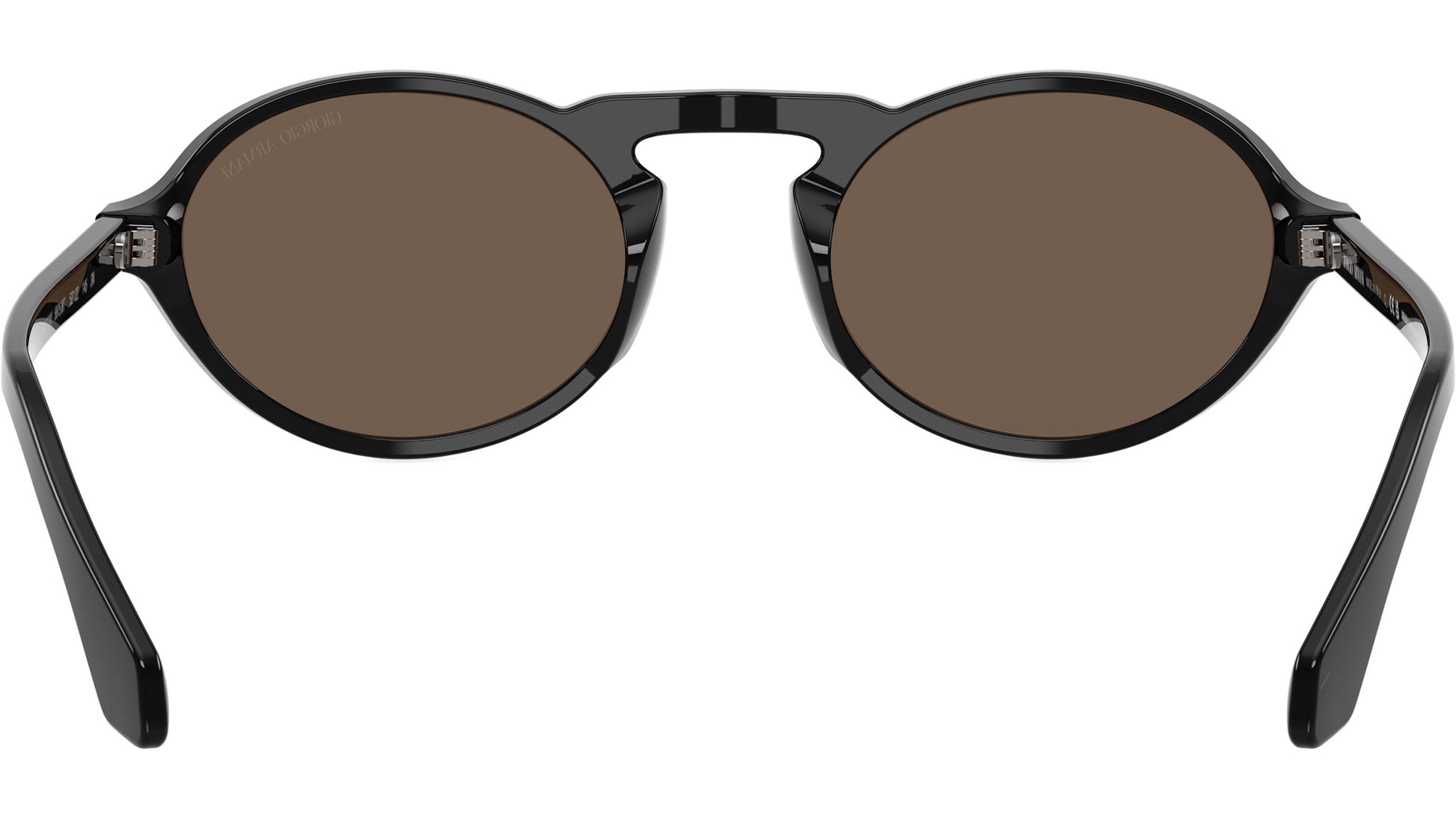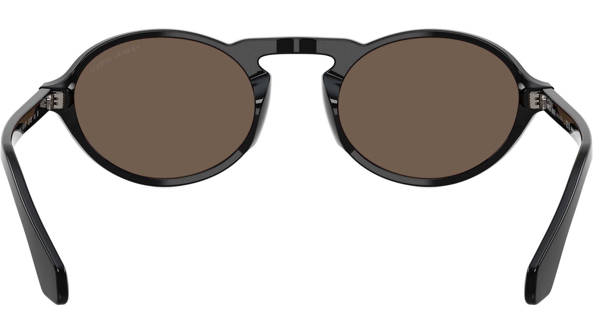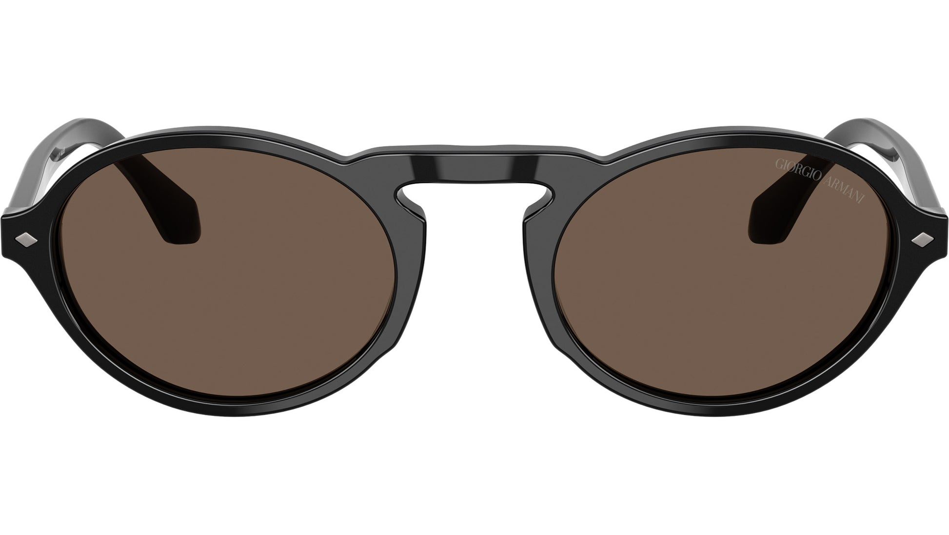 Giorgio Armani AR 8219U 58758T sunglasses, featuring black oval acetate frame and dark brown glass lenses. Universal fit. Brand line: Armani Code. Style code: 0AR8219U. Color code: 58758T. Authorized Giorgio Armani online reseller. Your glasses will include the original case and accessories and are covered by a 12-month global warranty.