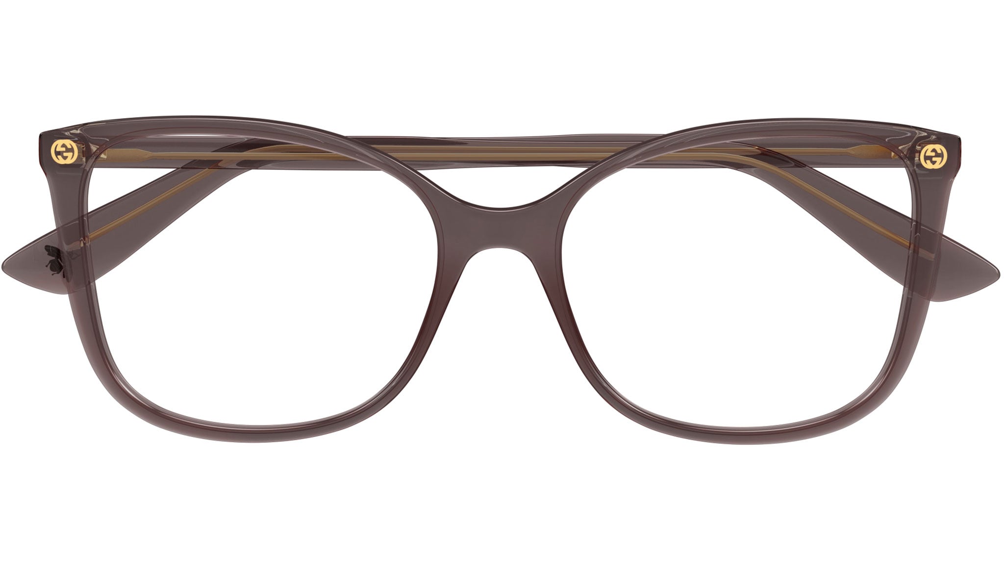 Gucci eyewear model GG0026O Lettering line cat eye acetate frame color code 019 shiny transparent taupe brown with brown temple and demo lens. Authorized Gucci online reseller. Your glasses will come with the original case and accessories and will be covered by a 12-month global warranty.