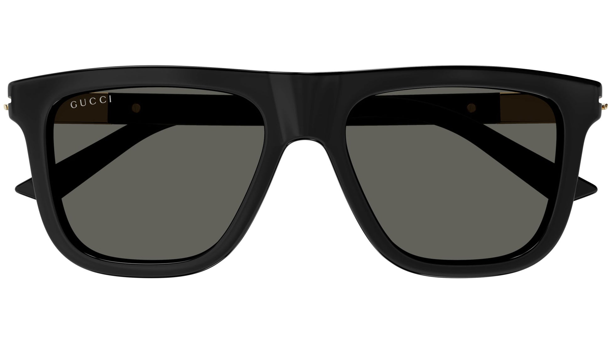 Gucci Web sunglasses model GG1502S rectangle recycled acetate frame color code 001 shiny black with black temple and solid grey lens.