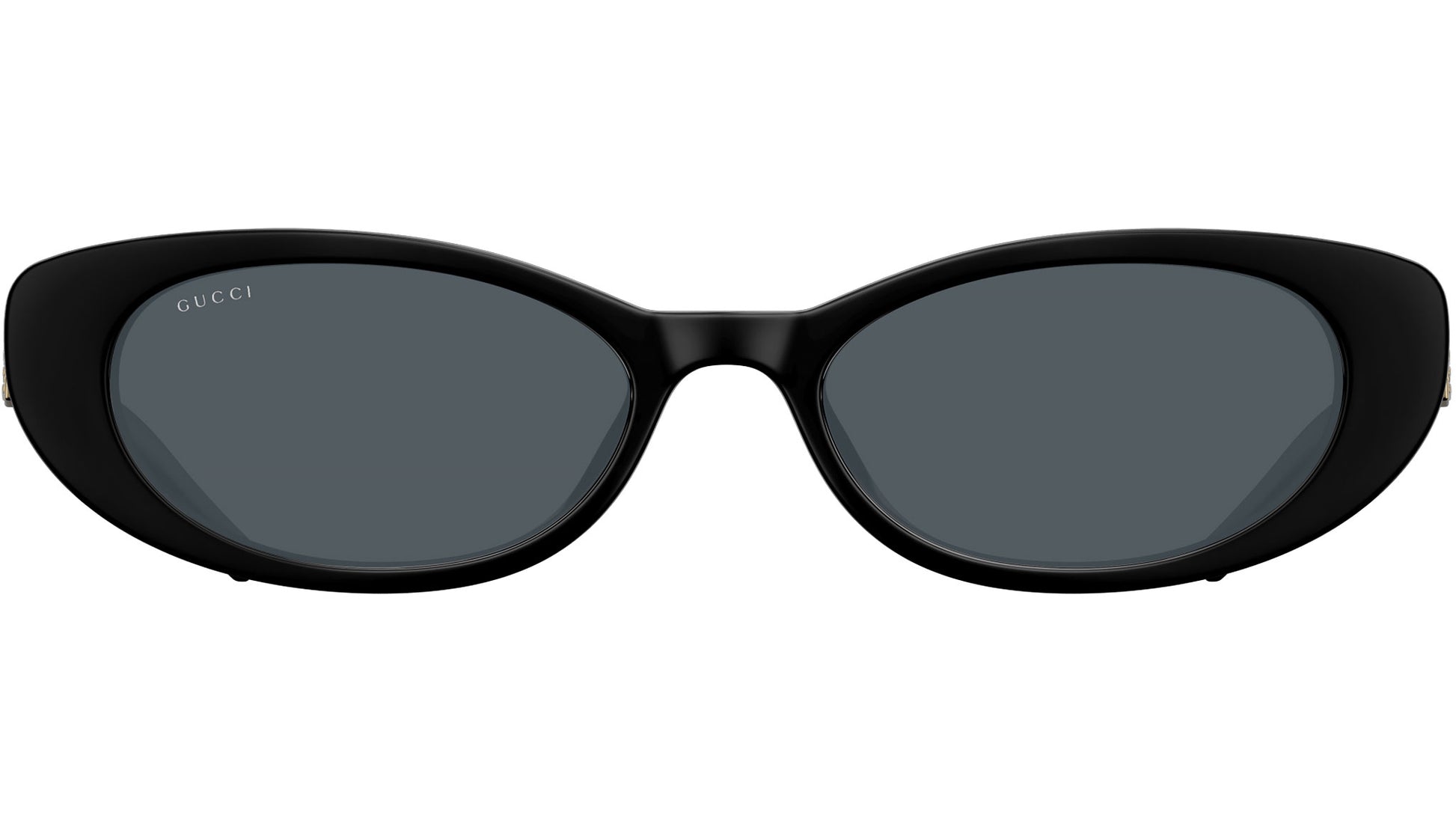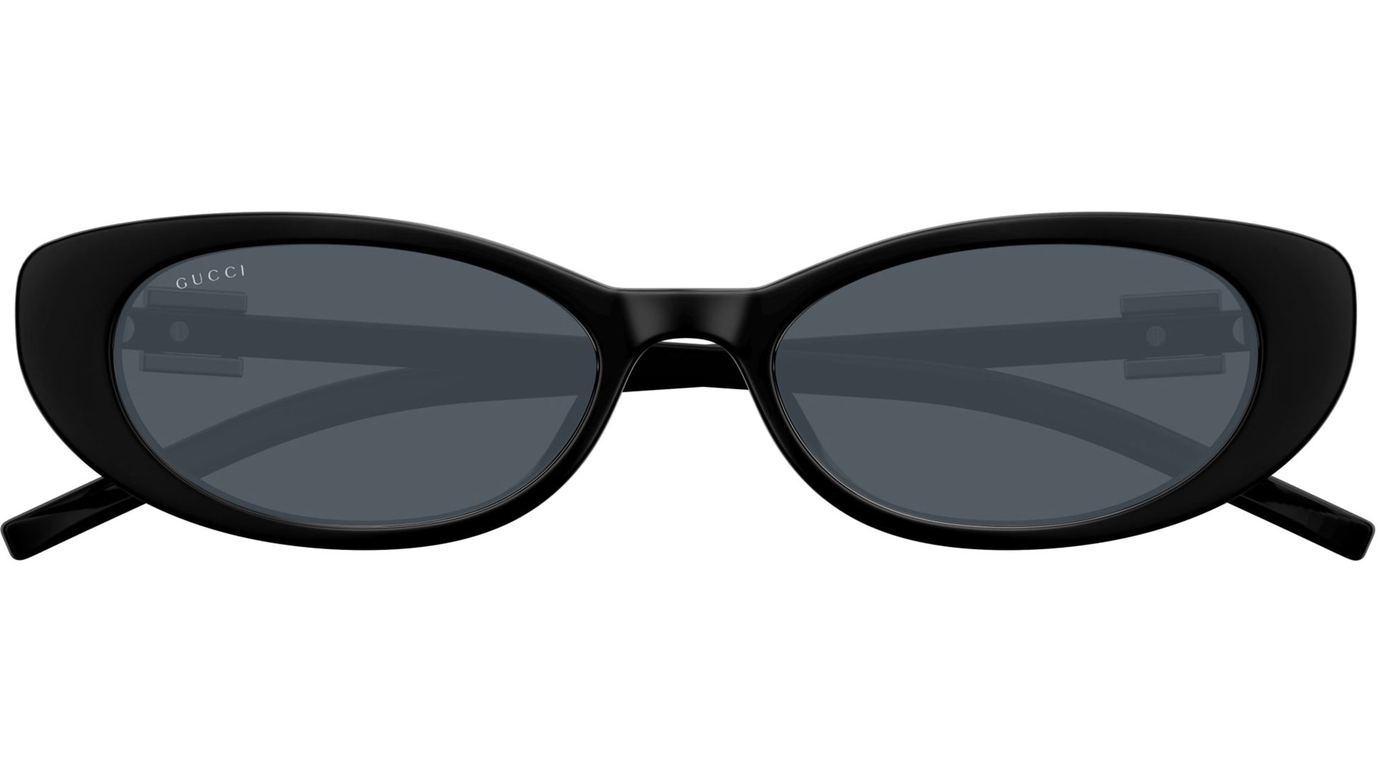 Gucci sunglasses model GG1680S GG Logo line cat eye injection frame color code 002 shiny black with black temple and solid grey lenses. Authorized Gucci online reseller. Your glasses will come with the original case and accessories and will be covered by a 12-month global warranty.