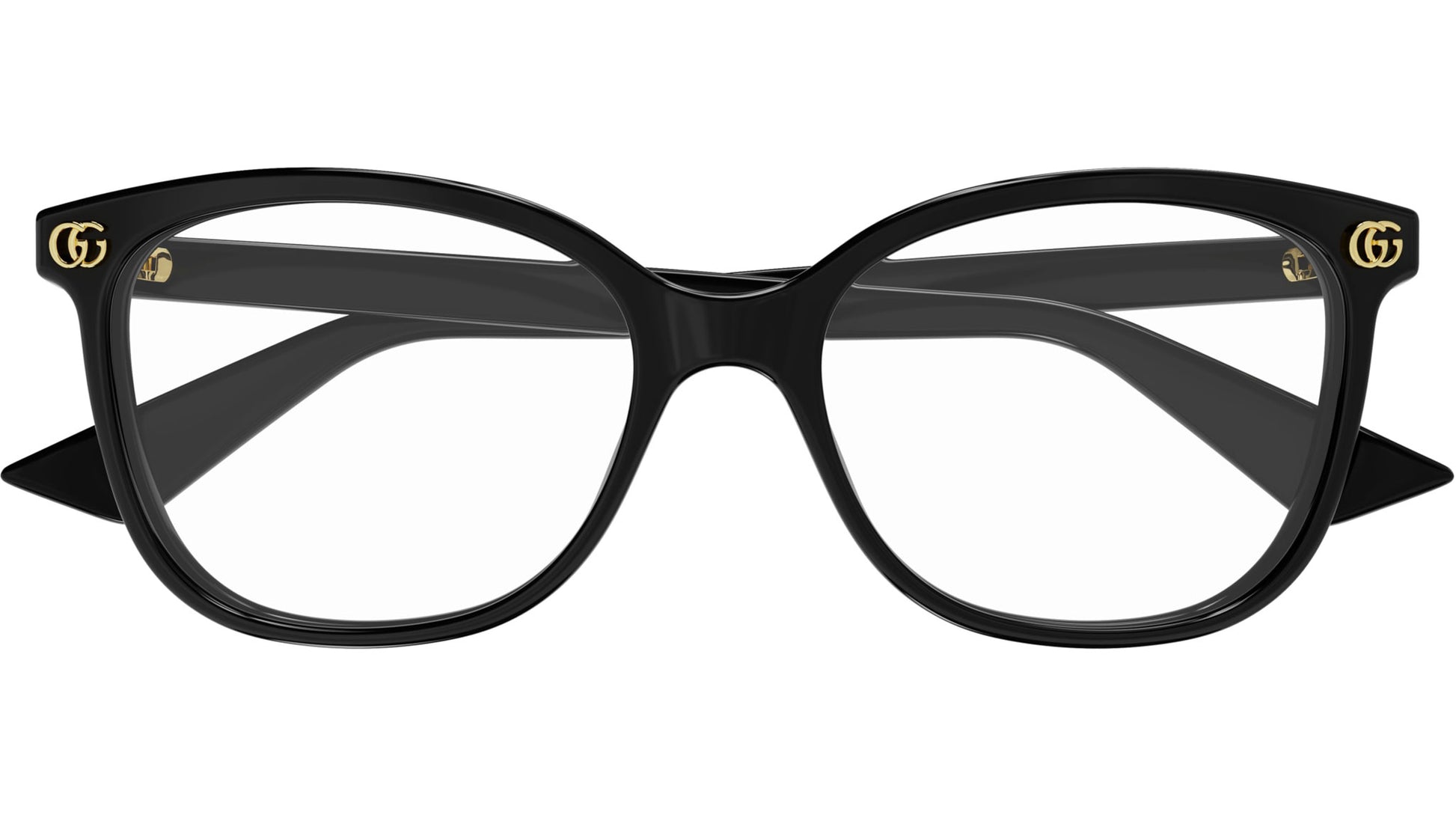Gucci GG1816O glasses for women, featuring shiny black rectangular recycled acetate frame and demo lenses. Brand line: GG Logo. Style code: GG1816O. Color code: size 54: 005. Size 51: 004. Made in Italy. Authorized Gucci online reseller. Your glasses will include the original case and accessories and are covered by a 12-month global warranty.