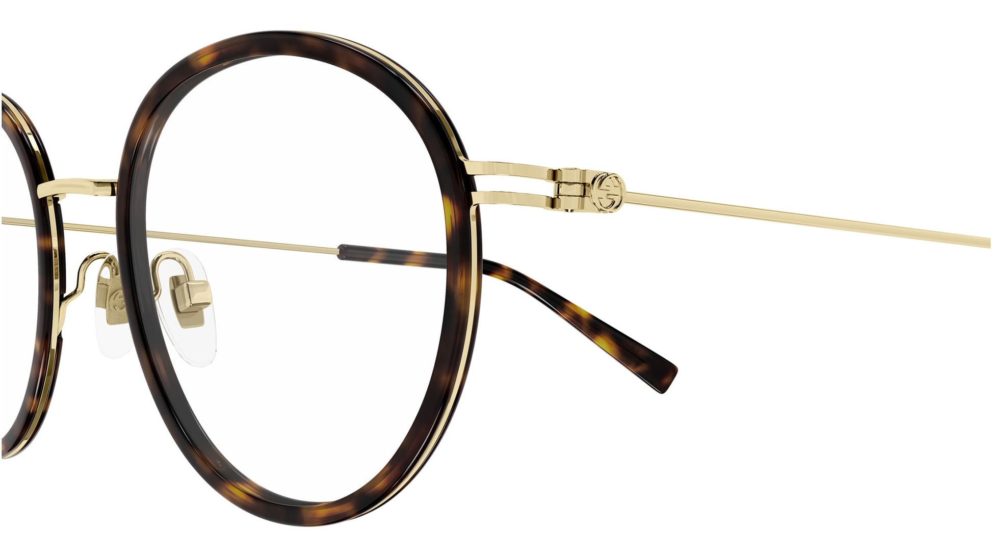 Gucci GG1851O 002 glasses for women, featuring shiny dark havana panthos injection frame and demo lenses. Brand line: Web. Style code: GG1851O. Color code: 002. Made in Japan. Authorized Gucci online reseller. Your glasses will include the original case and accessories and are covered by a 12-month global warranty.