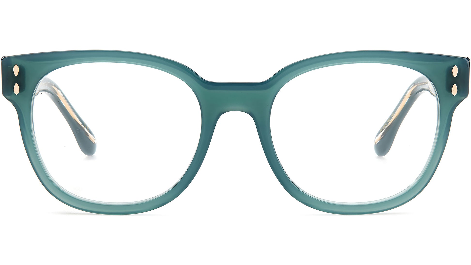 Isabel Marant’s Trendy Acetate eyewear collection makes a bold statement with a selection of lightweight acetate frames in fashion-forward tones. Featuring metal temple cores and lasered logo hinges, each pair pays tribute to a signature brand detail with leaf-shaped end tips and silver leaf rivets on the front and temples.