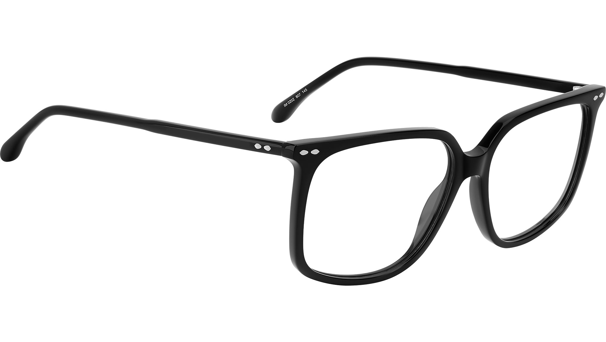 Isabel Marant IM 0202 807 glasses for women, featuring black rectangular acetate frame and demo lenses. Freshen up your look with "The In Love" eyewear line from Isabel Marant, putting a delicate spin on timeless acetate frames with ultra-thin profiles. Timeless hues feature alongside classy transparent colourways, all with signature logo lettering on the temple. These optical glasses enrich a chic rectangular silhouette with the brand's iconic leaf motif in the form of shaped trims and end tips. Brand line: The In Love. Style code: 109549. Color code: 807. Authorized Isabel Marant online reseller. Your glasses will include the original case and accessories and are covered by a 12-month global warranty.