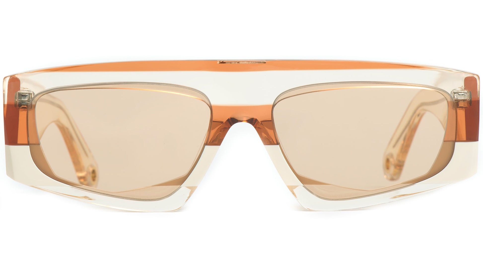 A wide, angular frame, the Les Lunettes Yauco Shade of Orange sunglasses with light brown lenses from Jacquemus are sure to turn heads.