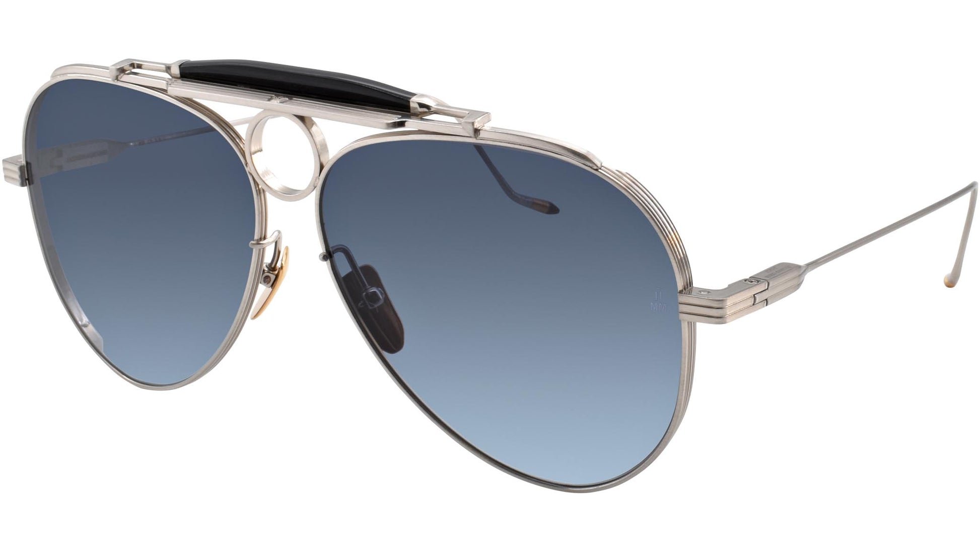 Boasting a dark gold frame entirely crafted from 100% beta titanium, the eyewear also comes with black cured cellulose acetate accents and blue gradient lenses. The eyeglasses feature a custom silver block hinge, black acetate bridge accents, and black epoxy tail-fin temple tips. Jacques Marie Mage has also incorporated custom nose pads with the brand's logo and hairline engraving. The denim gradient CR-39 lenses come with the engraved Diamond Cross Ranch logo. These aviator-shaped frames have a 2 base lens, complete with a backside anti-reflective treatment, providing 100% UV protection.