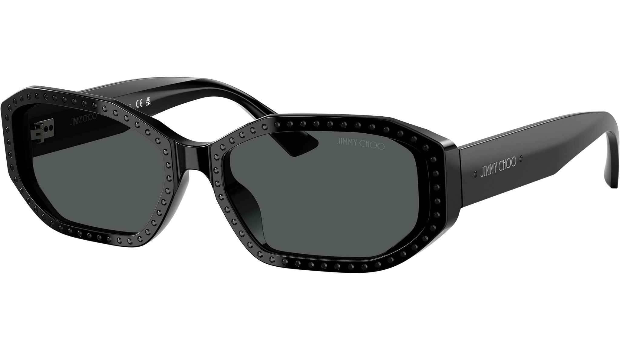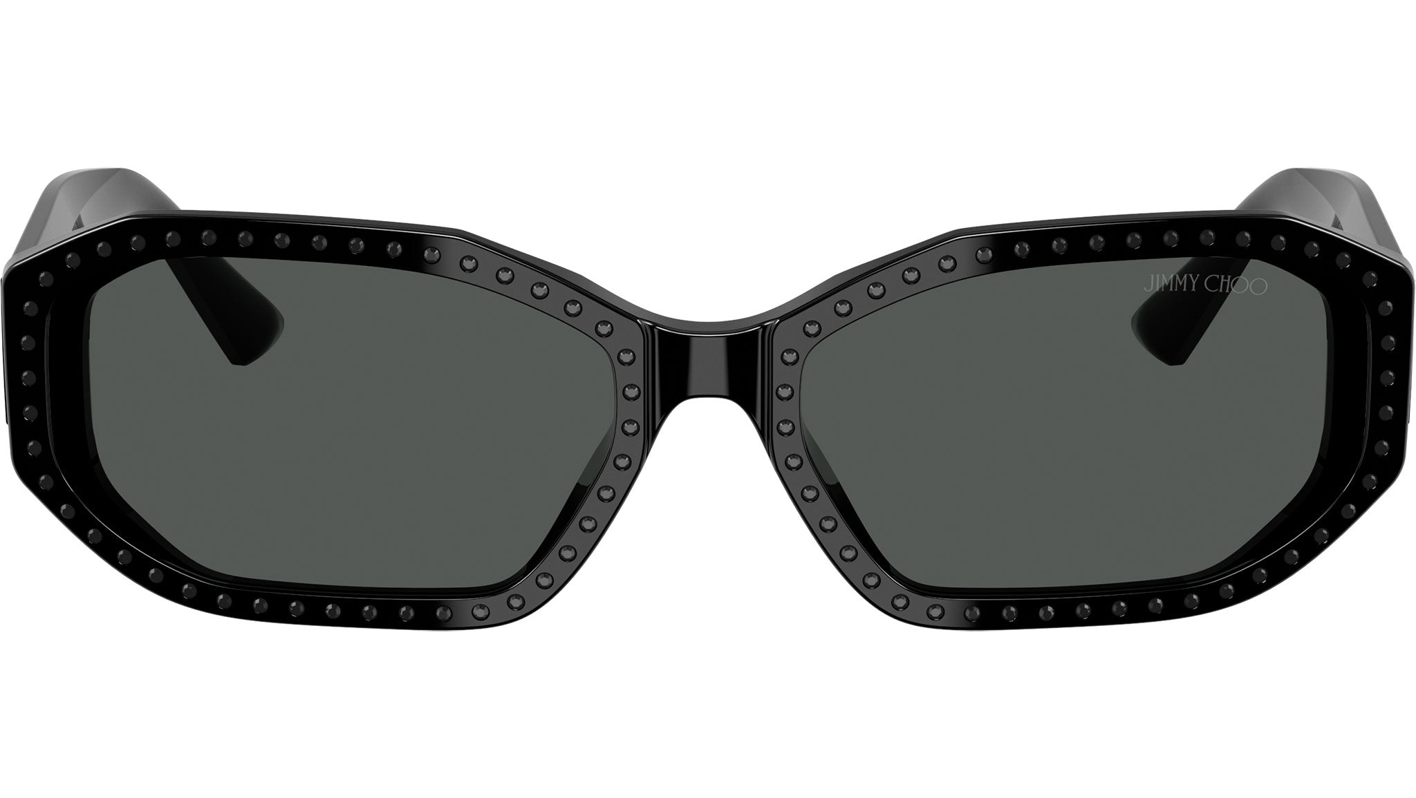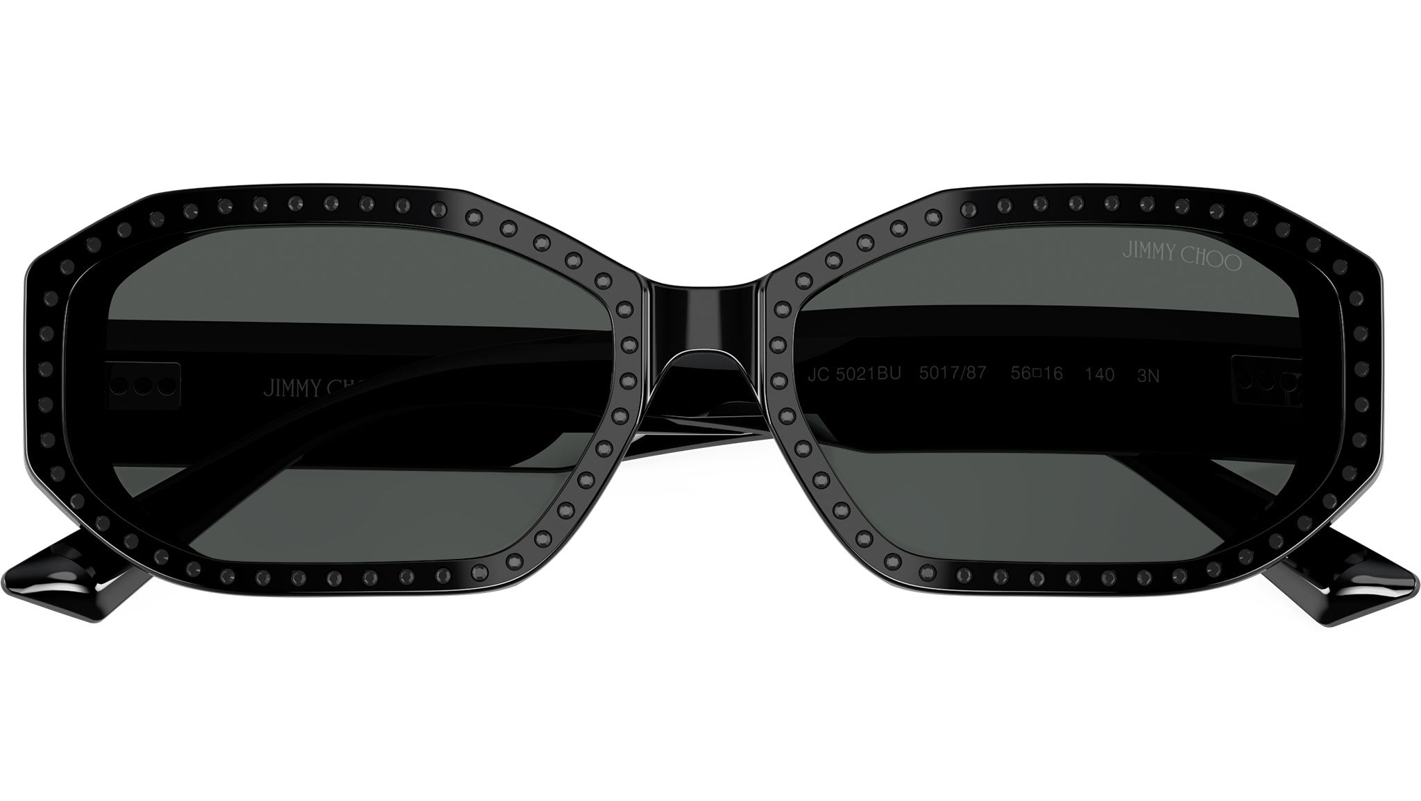 Jimmy Choo JC5021BU 501787 sunglasses for women, featuring black / crystal jet oval acetate frame and dark grey bio polyamide lenses. Universal fit. Brand line: Crystal. Style code: JC5021BU. Color code: 501787. Authorized Swarovski online reseller. Your glasses will include the original case and accessories and are covered by a 12-month global warranty.