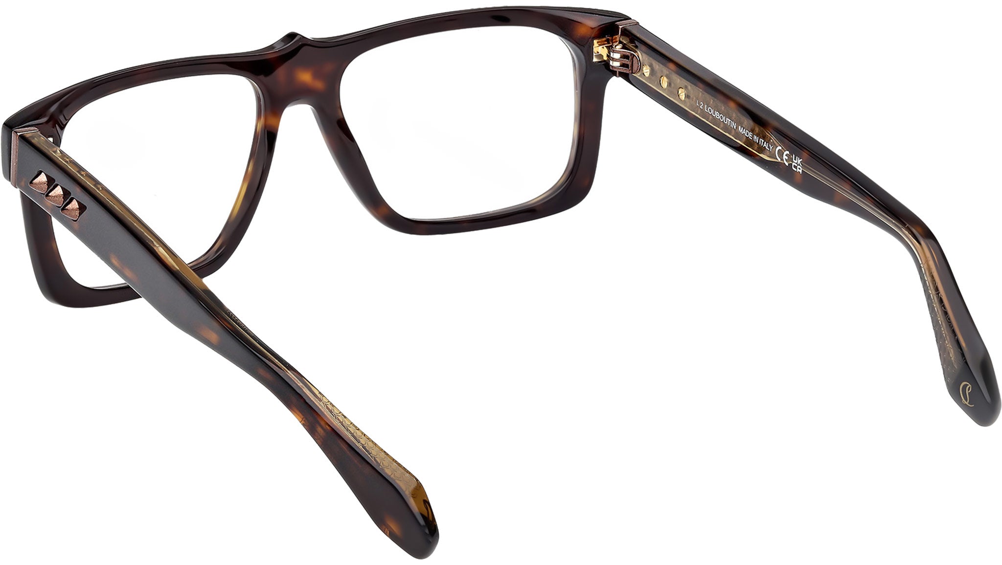 Louboutin glasses for women model LB5006 featuring dark havana full-rim acetate frame with transparent demo lenses. Brand code: LB5006. Color code: 052. Authorised Louboutin Eyewear Online Reseller. Your glasses will include the original case and accessories and will be covered by a 12-month global warranty.