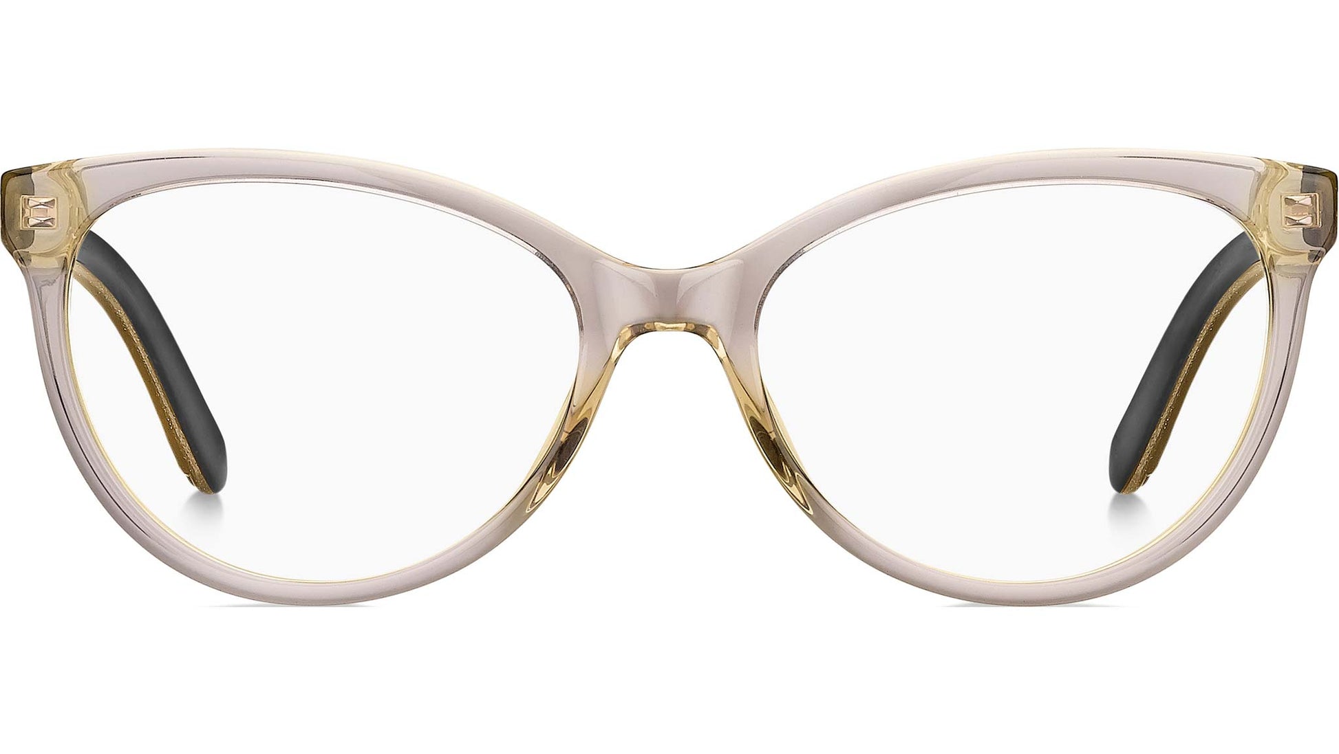 At once easy to wear and packed with personality, these women’s eyeglasses will add a distinctive touch to any look. Sculpted from smooth acetate to an elegant cat-eye shape, the full-rim front is enhanced by the bevel detail that brings out the color depth and intensity. Meanwhile, the bold triple-layer temples traced with a touch of glitter in low relief and stamped with the metallic heat-print logo ensure they’re show-stopping from all angles.