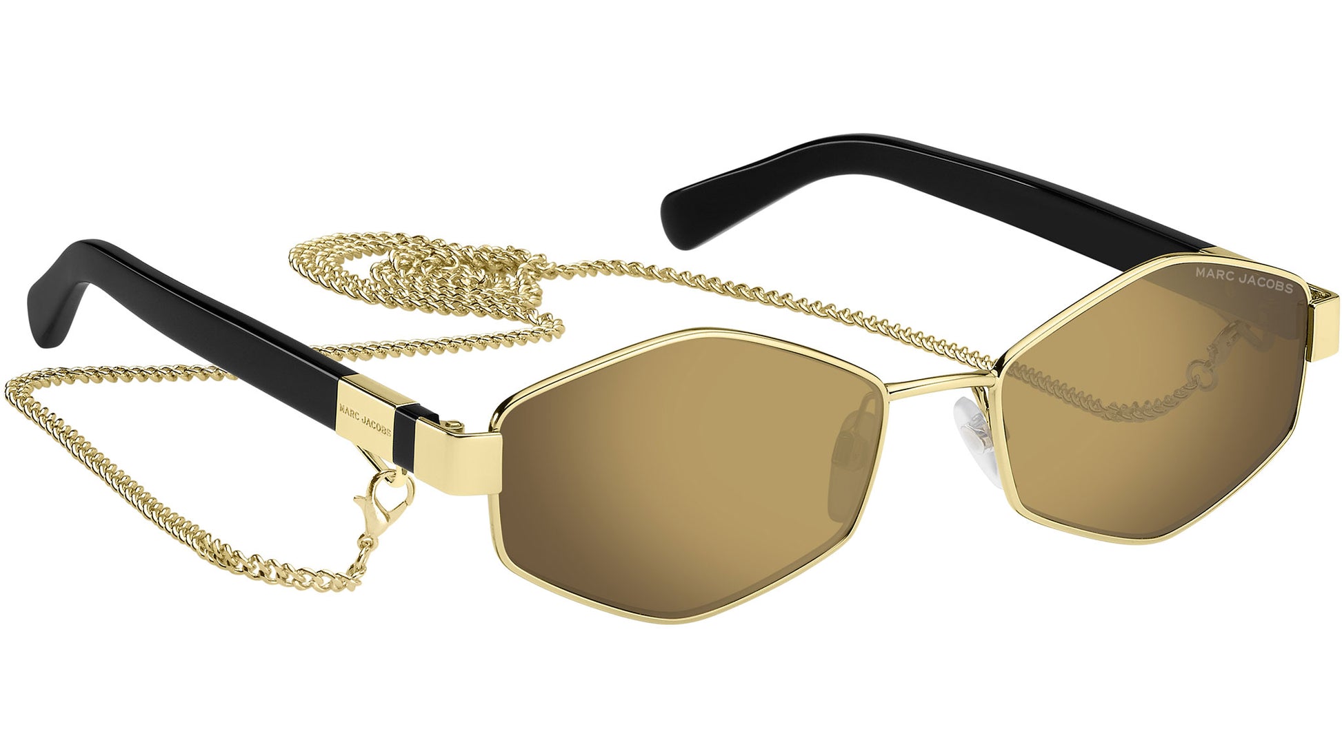 Marc Jacobs sunglasses model MARC 496/S color code RHL VP gold black with gold mirror lens. A rectangle full rim metal shades designed for women. Authorised Marc Jacobs Online Reseller. Your glasses will come including the original case and accessories and will be covered by 12 month global warranty. At once retro and futuristic, fashion-forward yet wearable – these women’s sunglasses reinvigorate the wardrobe classic with an ultra-cool spin. The full-rim hexagonal frames are crafted from a modern mix of metal and acetate and fitted with solid-coloured lenses for a fresh and nonchalant vibe. Notice the vintage-inspired, rectangular metal plaque engraved with ‘The Marc Jacobs’ logo and the delicate chain detail adorning the temples.