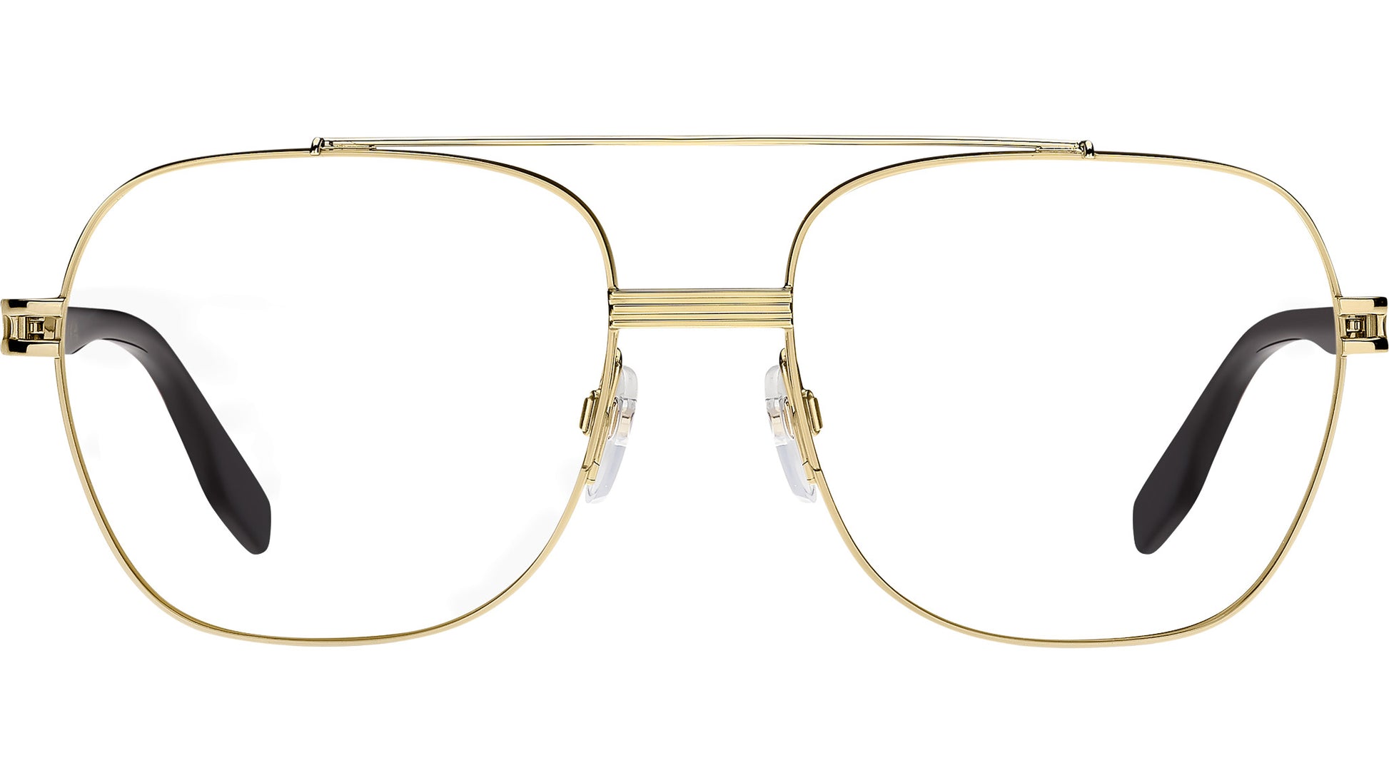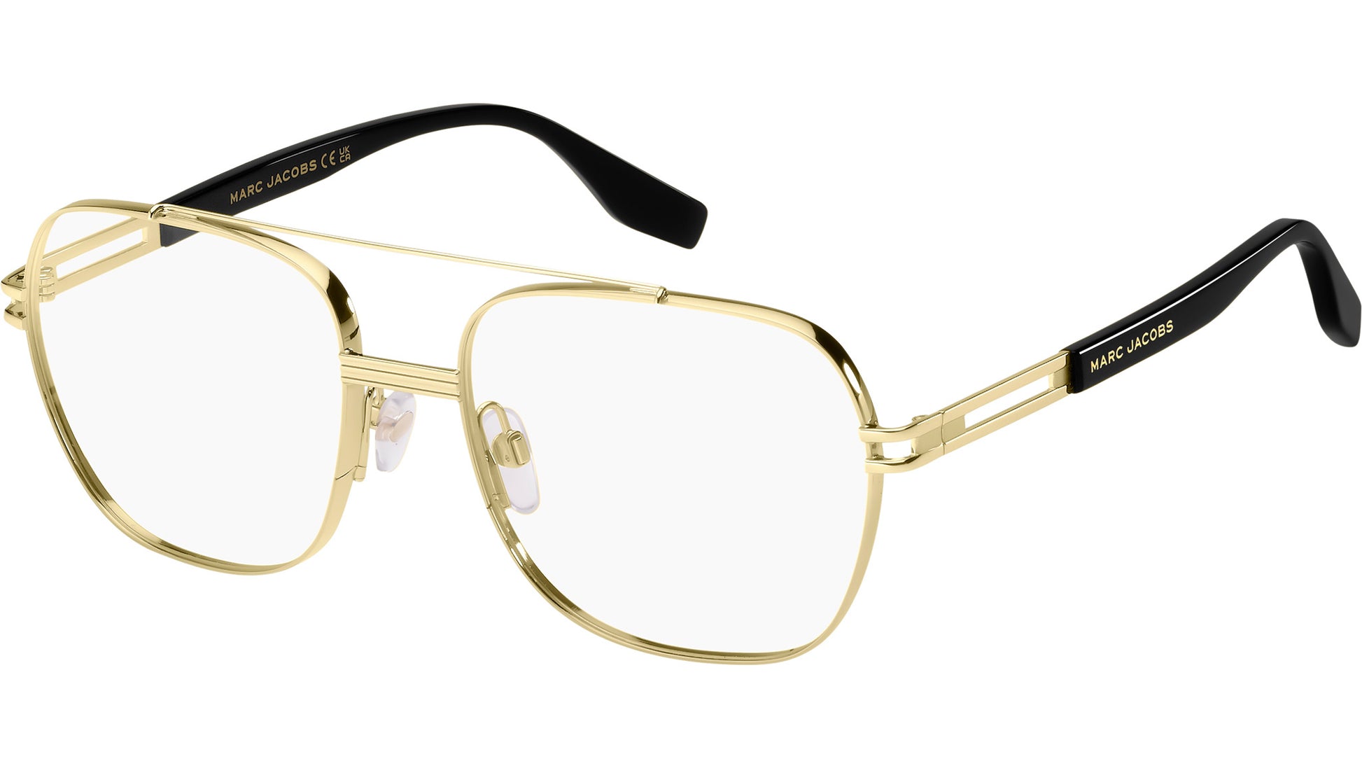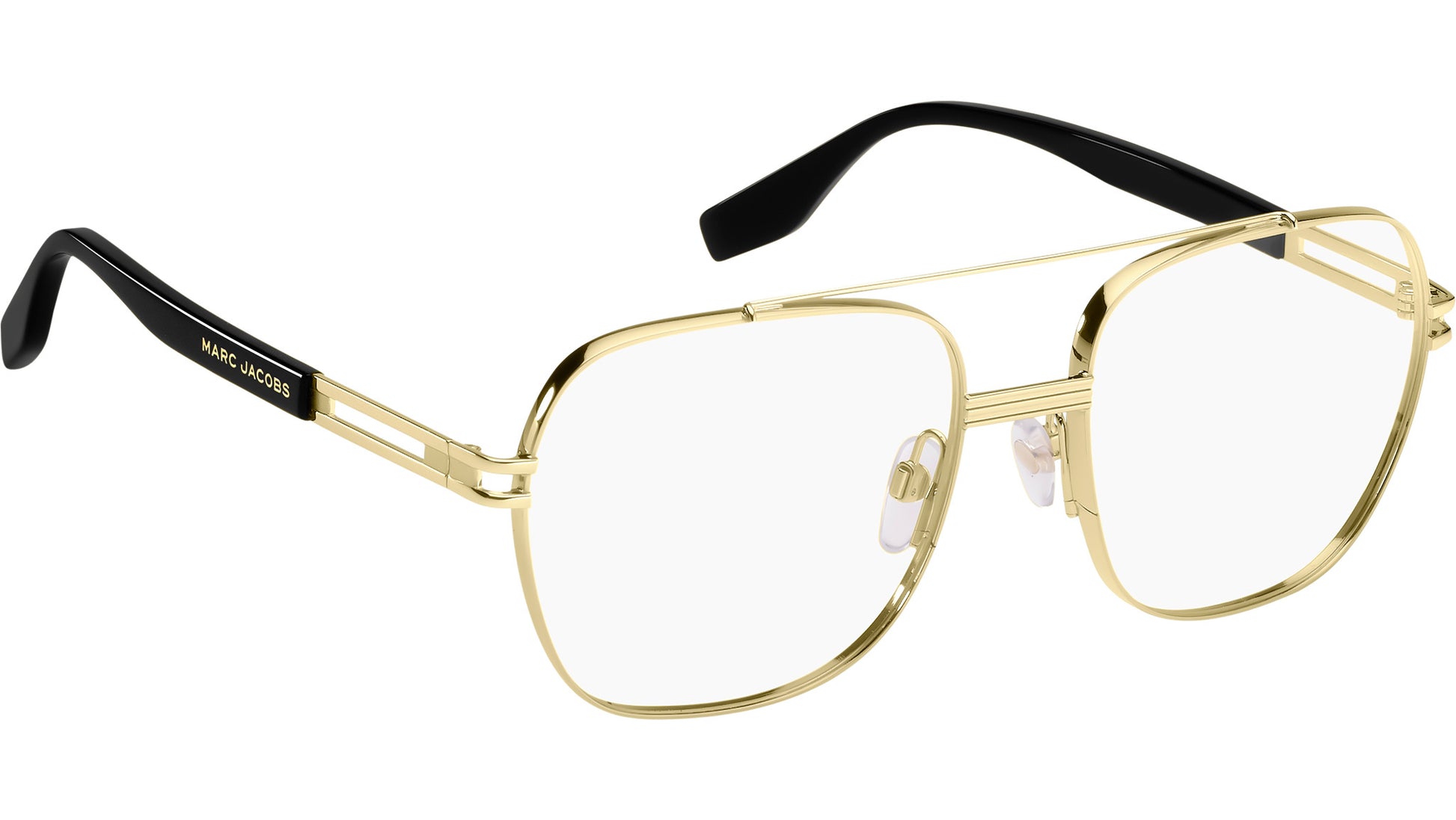 Marc Jacobs MARC 785 RHL glasses for men, featuring gold black rectangular metal frame and demo lens lenses. Marc Jacobs' fierce and unexpected aesthetic is perfectly distilled into the men's eyewear range, as evidenced by these optical glasses. The designer's point of view is brought to life through the signature double metal trim on the lugs and the metallic logo printed on the temples. Built upon a foundation of robust yet polished shapes, the collection explores different design territories: from bold acetate frames to distinctive combination styles, catering to every need of the discerning dresser. Brand line: Man. Style code: 108933. Color code: RHL. Authorized Marc Jacobs online reseller. Your glasses will include the original case and accessories and are covered by a 12-month global warranty.