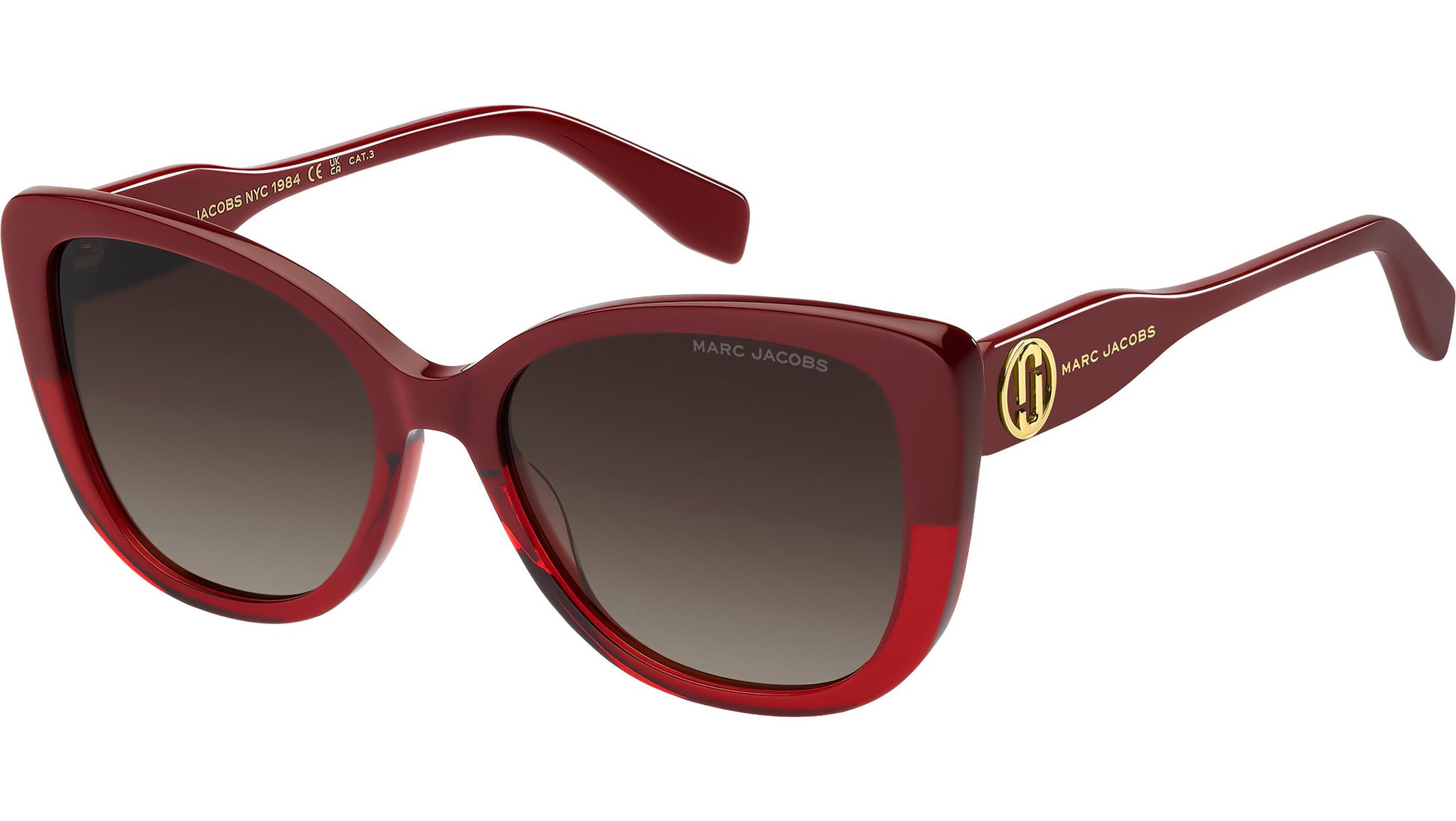 Marc Jacobs MARC 815/S LHF HA sunglasses for women, featuring burgundy rectangular acetate frame and brown shaded lenses. A sophisticated new take on Marc Jacobs' iconic themes, these women's sunglasses combine soft lines and ultra-sharp angles to stunning effect. Entirely crafted from acetate, it's the unmistakable finishing touches that amp up their fashion credentials: notice the round metal J Marc trims, the hot-stamped logo on the temples and the laser-etched signature on the left lens. The colour palette beautifully harmonises timeless and contemporary tones. Brand line: Contemporary Woman. Style code: 208032. Color code: LHF HA. Authorized Marc Jacobs online reseller. Your glasses will include the original case and accessories and are covered by a 12-month global warranty.
