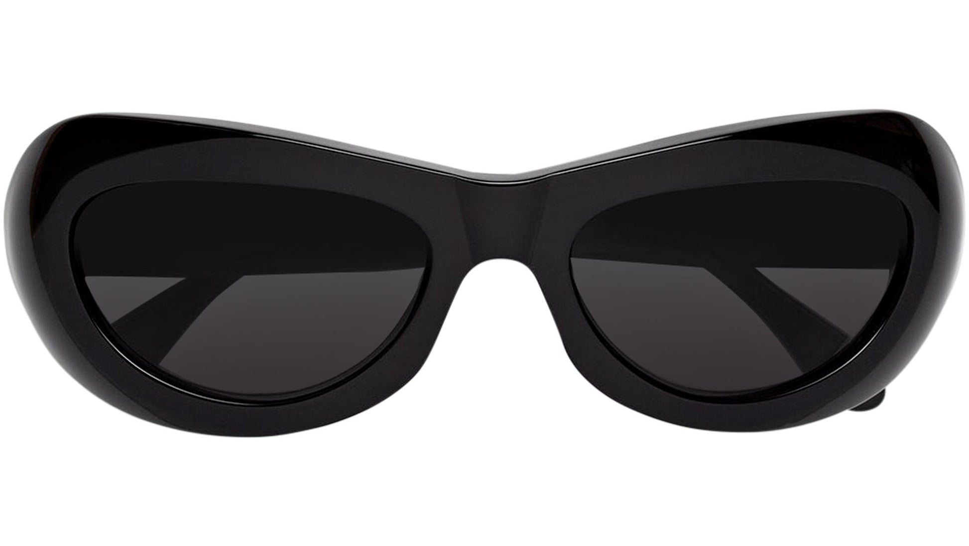 Designed exclusively for Marni, Field of Rushes is a rounded yet compact silhouette characterised by a low nose-bridge and oval lenses. The model’s key feature are its extra-thick acetate rims, milled around the edges to form a rounded, sleek shape. Sturdy temples with an engraved Marni logo complete the piece. This version comes in black acetate with matching lenses and gold decors. Sizes: R Lens Width: 59 mm. Frame Front: Frame Side: 140 mm. Product Code Size R: YJS