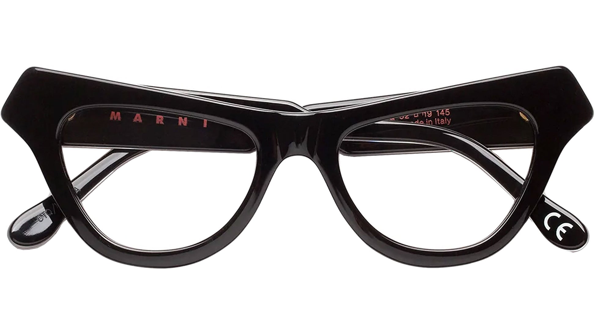 Designed exclusively for Marni, Jeju Island is a bold Optical frame characterized by a chunky acetate construction and sculpted rims. The model is a unique reinterpretation of cat-eye shapes, with triangular lenses and a pointed front. The unique v-shaped browline is matched by softly curved lenses. This version features an all-black acetate.