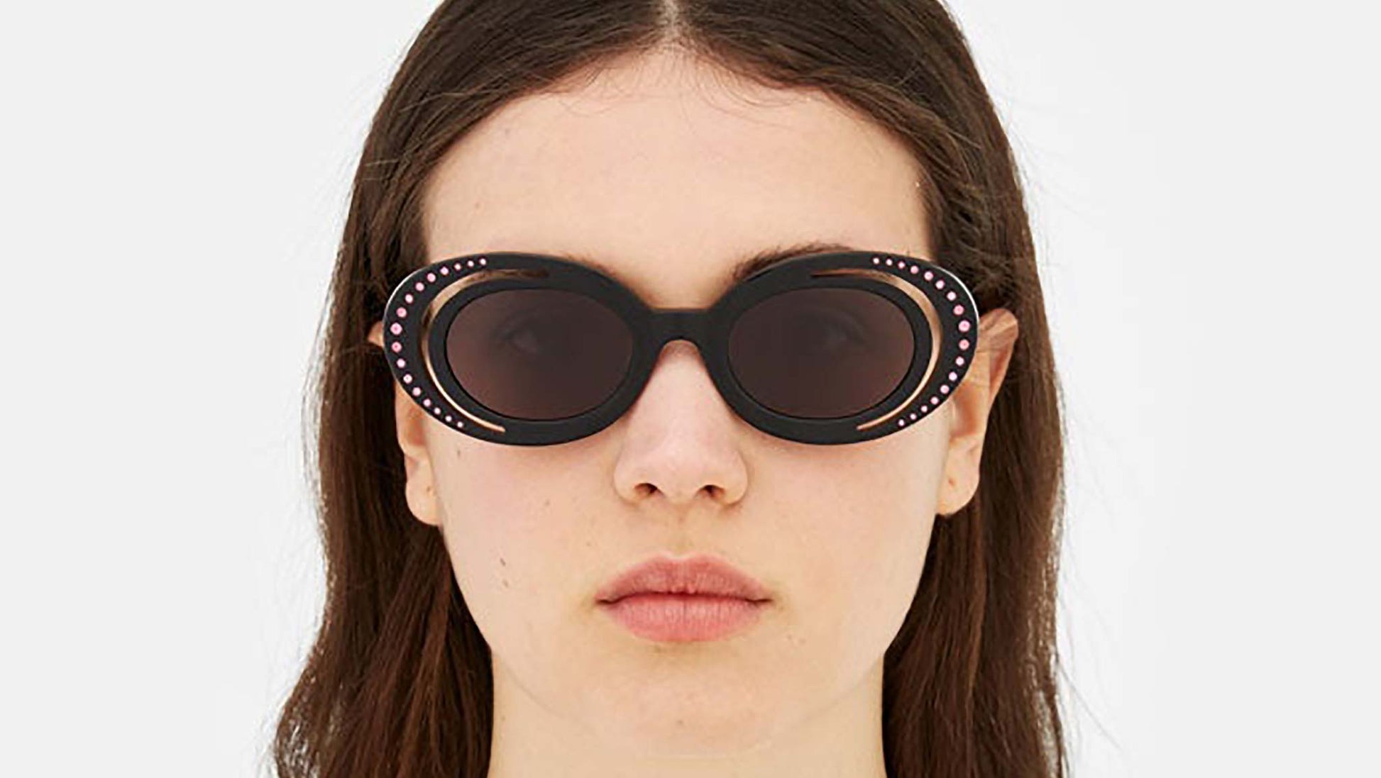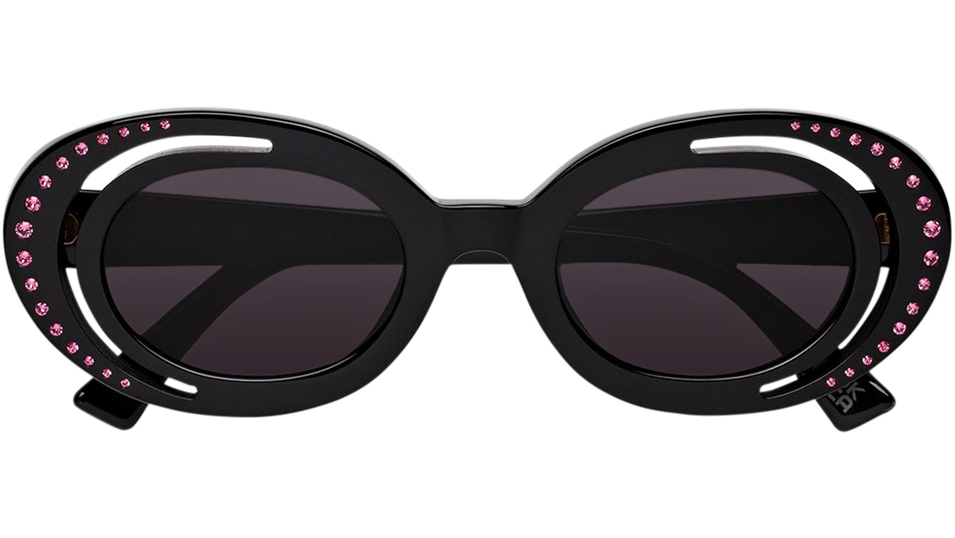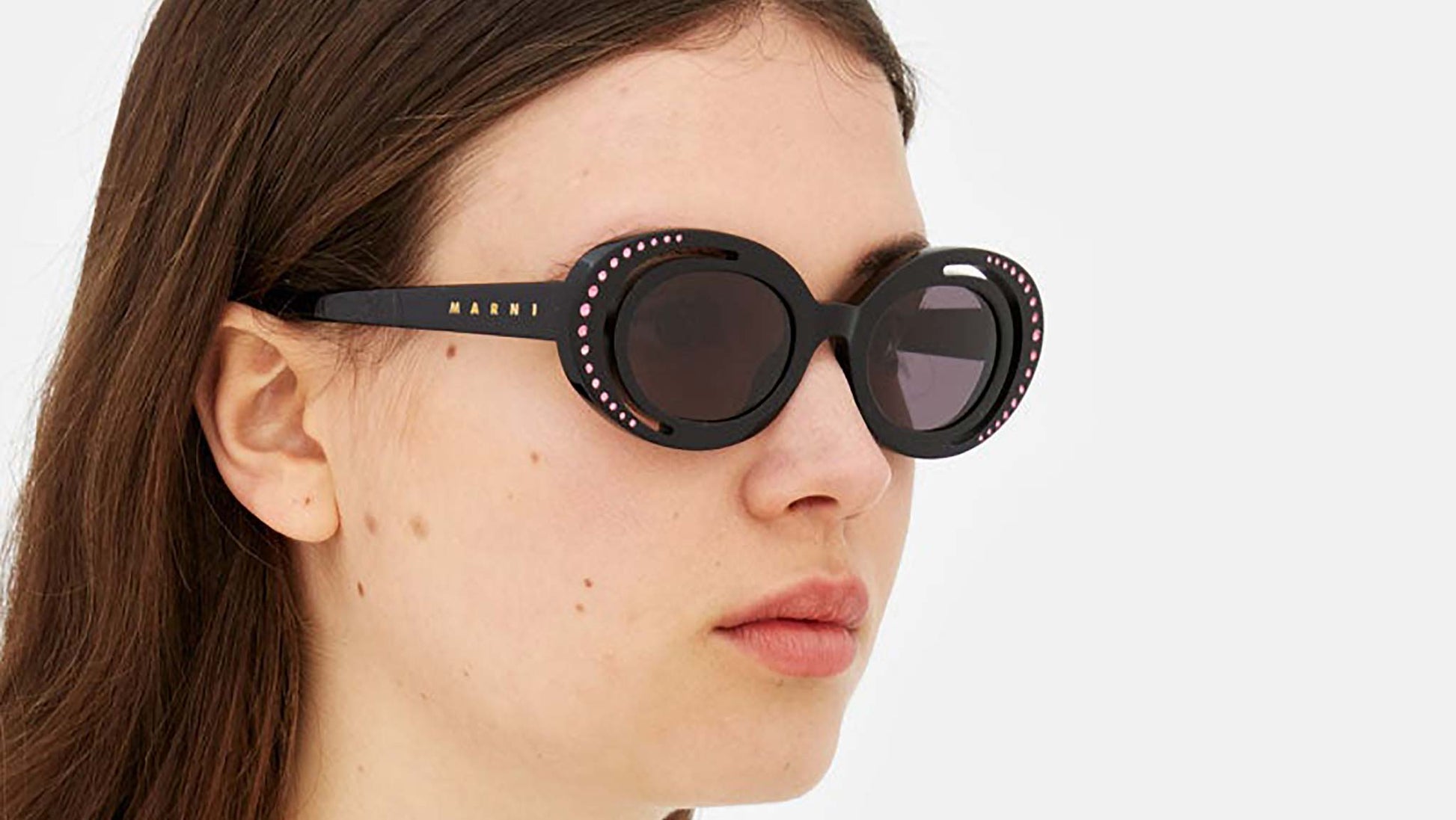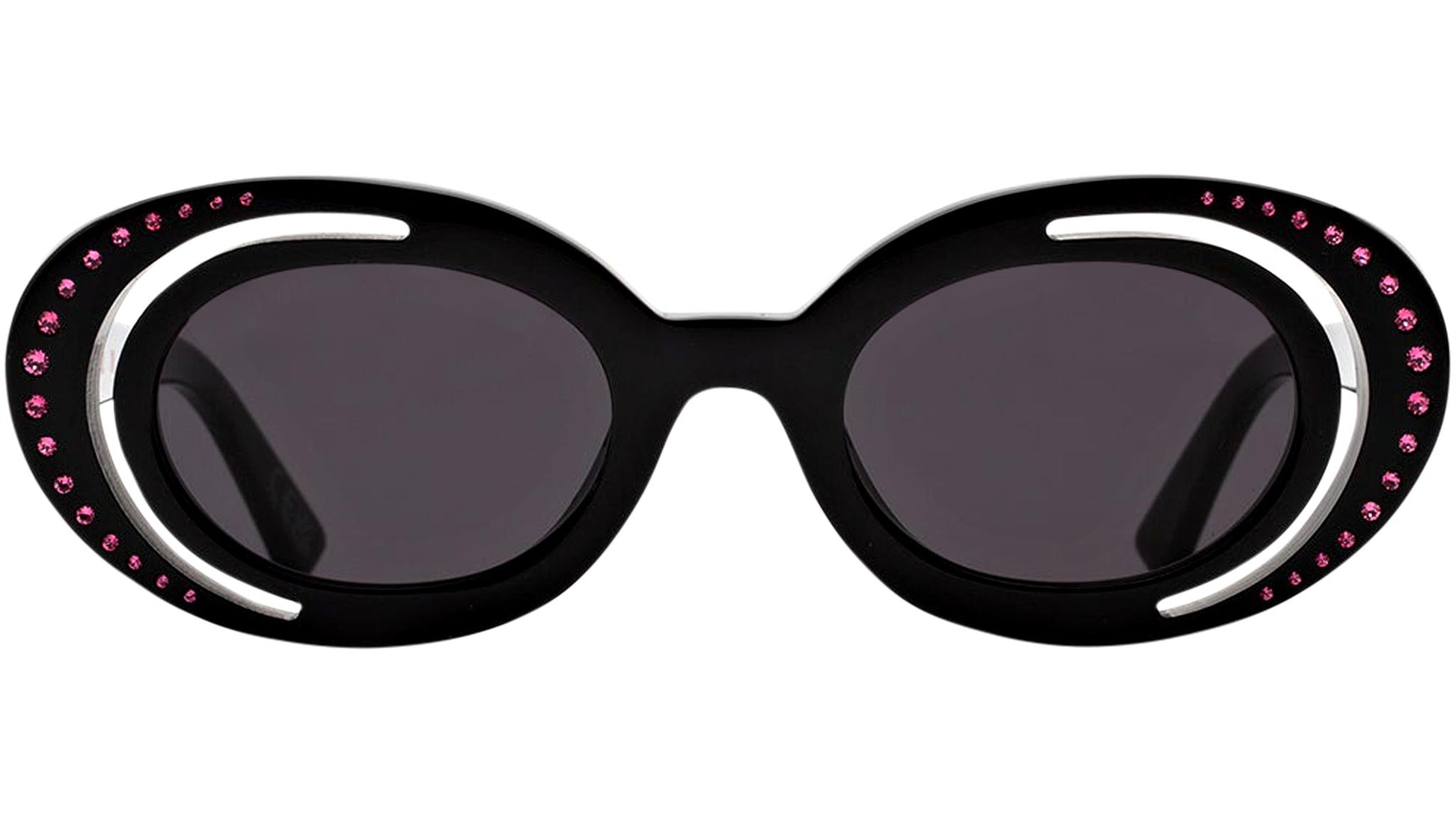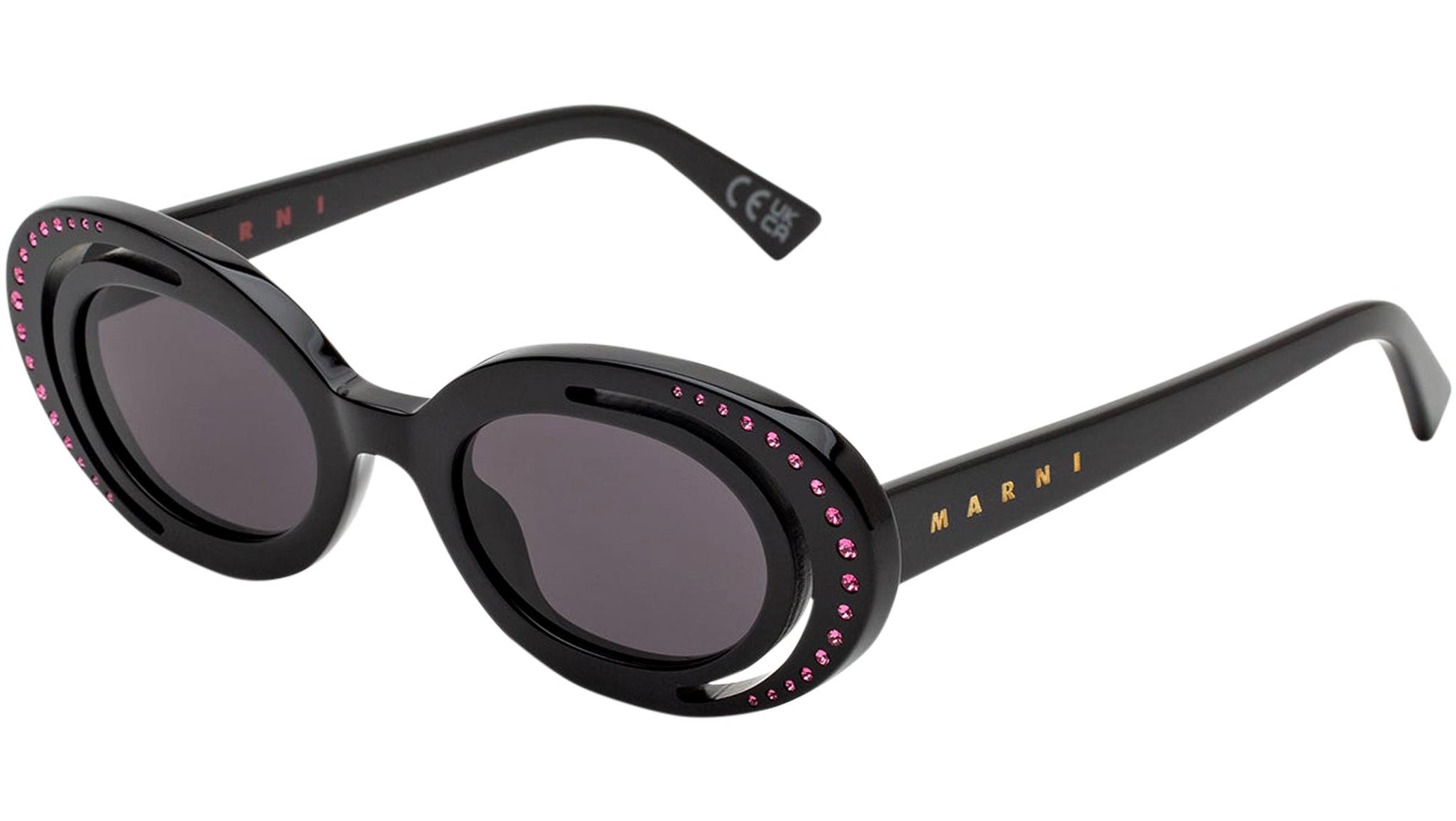 Designed exclusively for Marni, Zion Canyon is a unique silhouette characterised by an innovative, unexpected design and construction that elevates the oval frame. The model’s curvaceous and space-like rims have been completely carved out to form a half-moon shape on the outer edge. Sophisticated gems encased within the external acetate rings further elevate the piece’s shape while showcasing exceptional craftmanship and know-how of the made in Italy. This model is available in black acetate with matching lenses. Sizes: R Lens Width: 51 mm. Frame Front: Frame Side: 145 mm. Product Code Size R: D5M