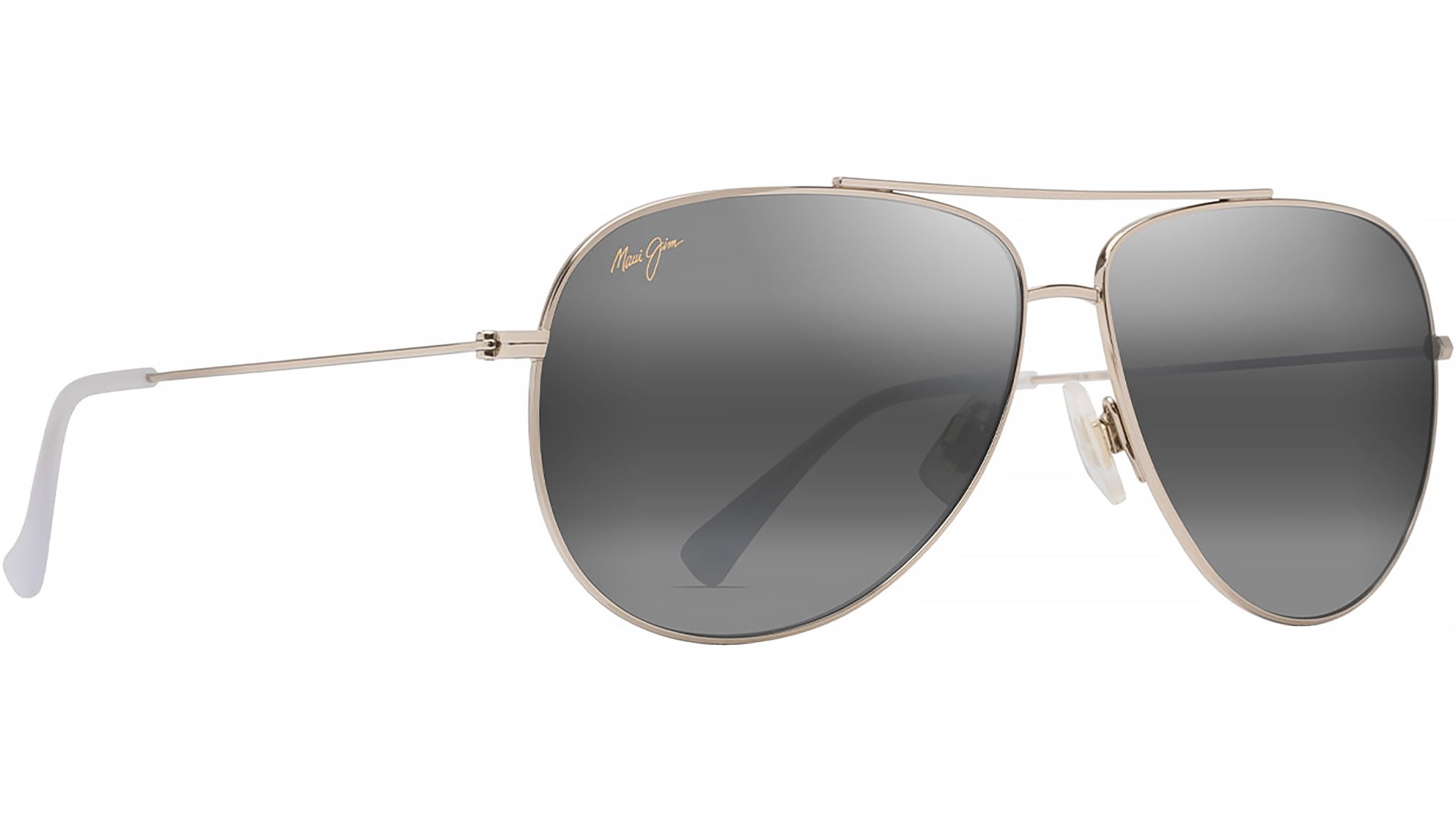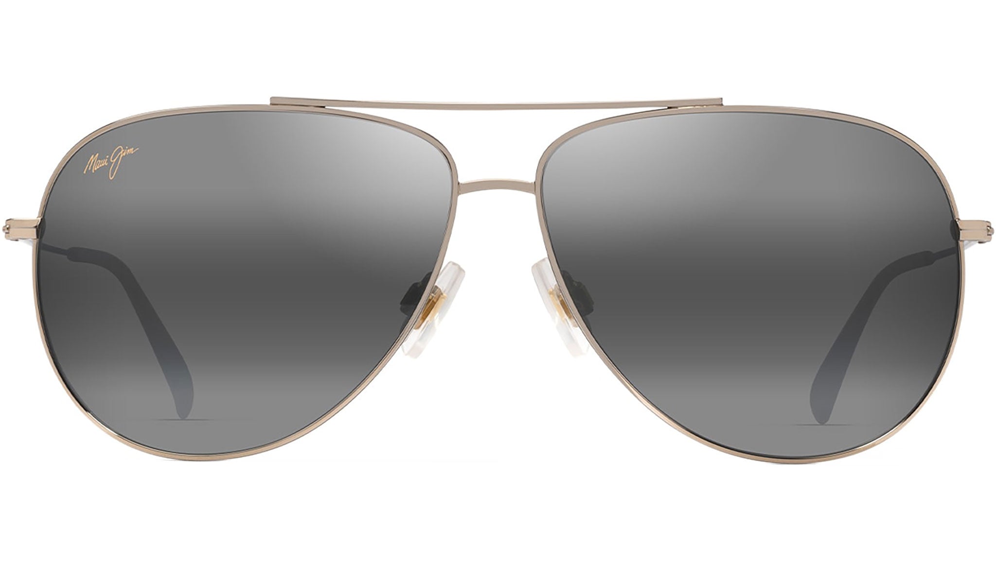 Maui Jim Hauoli XL sunglasses featuring shiny light gold / crystal pilot monel frame and neutral grey lenses. The Maui Jim Hau‘oli XL sunglasses offer an elevated take on the iconic teardrop aviator, featuring an extra-large frame for a bold, commanding presence. Crafted with MauiPure lenses and the brand’s exclusive PolarizedPlus2 technology, they provide exceptional clarity and vibrant, glare-free views from urban skylines to coastal horizons. The double bridge design is complemented by light gold temples with crystal detailing and transparent tips adorned with a colorful wavy pattern. Adjustable silicone nose pads ensure a secure and comfortable fit. This unisex aviator model embodies Maui Jim’s commitment to optical excellence and sophisticated styling. Brand line: Lifestyle. Style code: 674. Color code: 16A. Made in Japan. Authorized Maui Jim online reseller. Your glasses will include the original case and accessories and are covered by a 12-month global warranty.