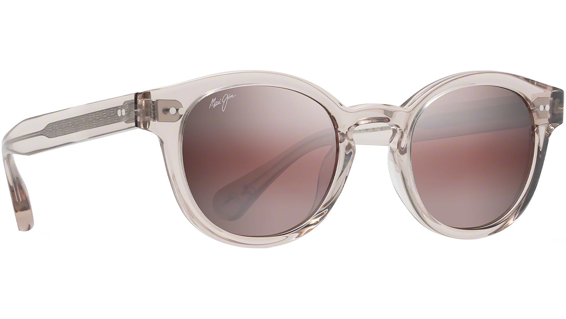 Maui Jim Joy Ride sunglasses model R841 color 05B crystal / hint of pink. MauiBrilliant™ Maui rose® lenses. PolarizedPlus2® technology goes beyond shielding your eyes from glare and harmful UV to reveal and enhance the world's true vivid colors in detail.