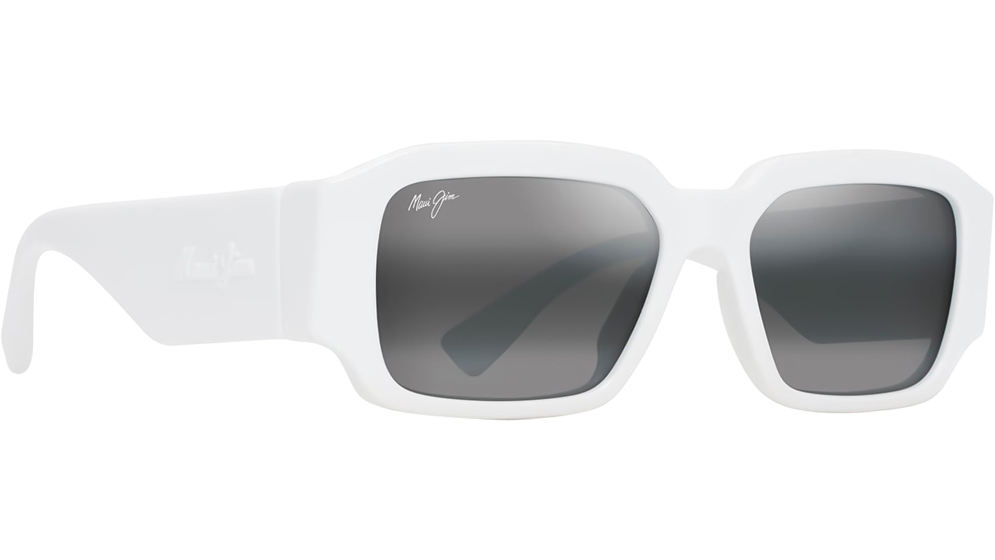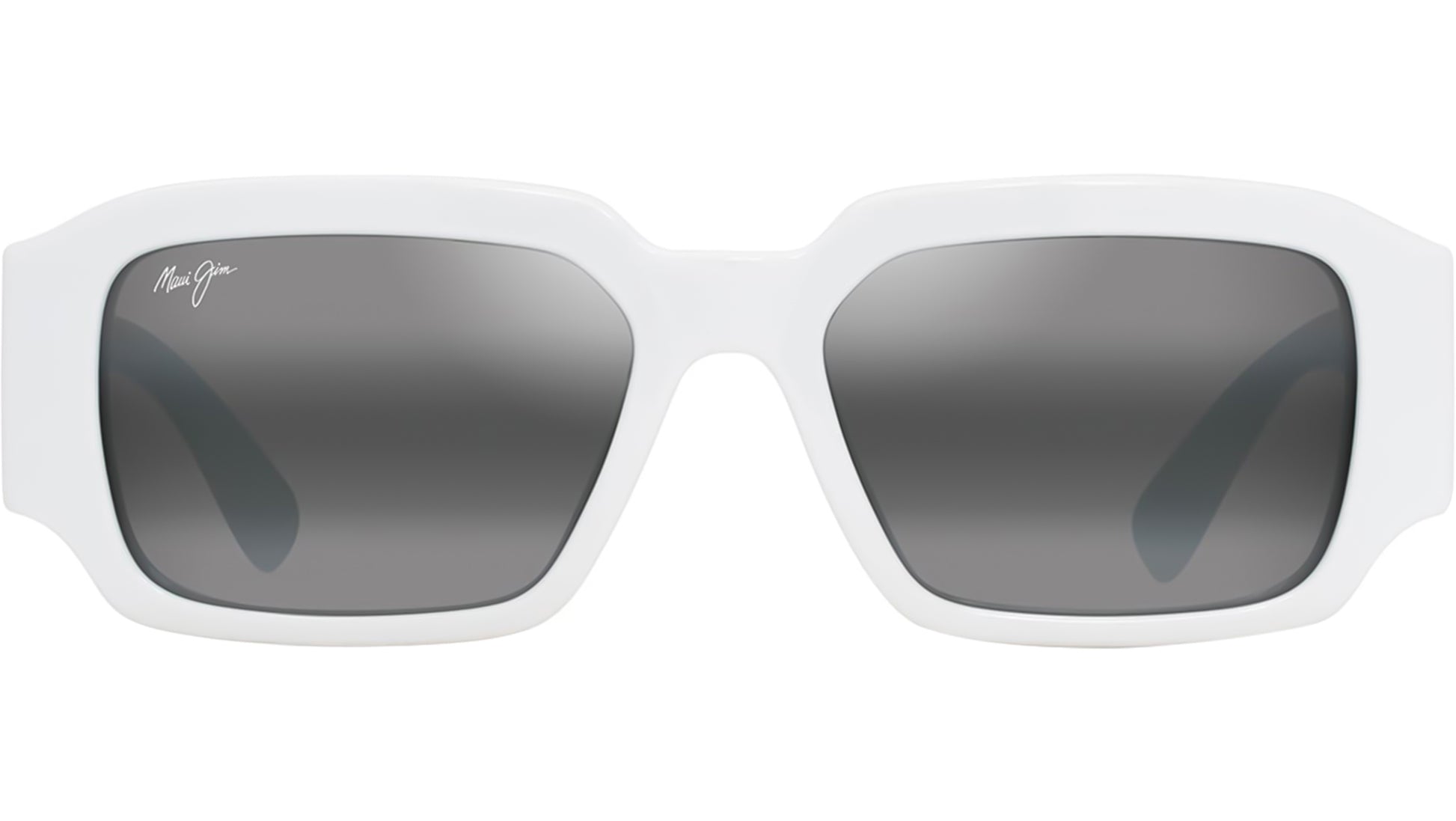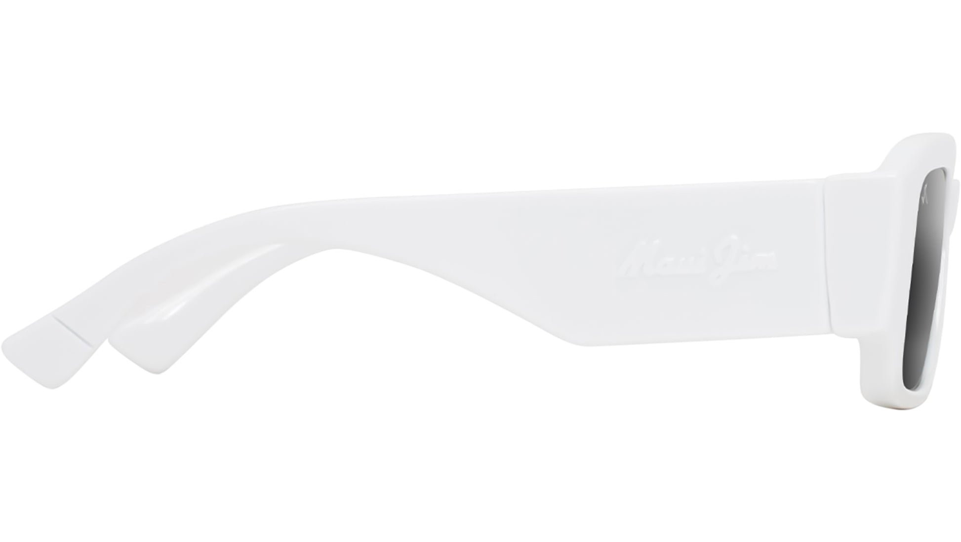 Maui Jim Kupale sunglasses model 639 color 05 shiny white. BI-Gradient neutral grey lenses. Hinge Type: traditional pin. MauiPure is the most popular lens material from Maui Jim research. It combines optics almost as crisp as SuperThin Glass with ultra lightweight and excellent scratch and shatter resistance. Color, clarity, detail: PolarizedPlus2 technology goes beyond shielding your eyes from glare and harmful UV to reveal and enhance the world's true vivid colors in detail.