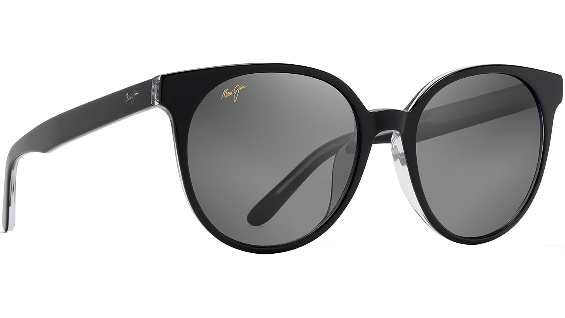 Maui Jim Mehana sunglasses model GS866 color 02 black on crystal. gradient grey lenses. PolarizedPlus2® technology goes beyond shielding your eyes from glare and harmful UV to reveal and enhance the world's true vivid colors in detail.