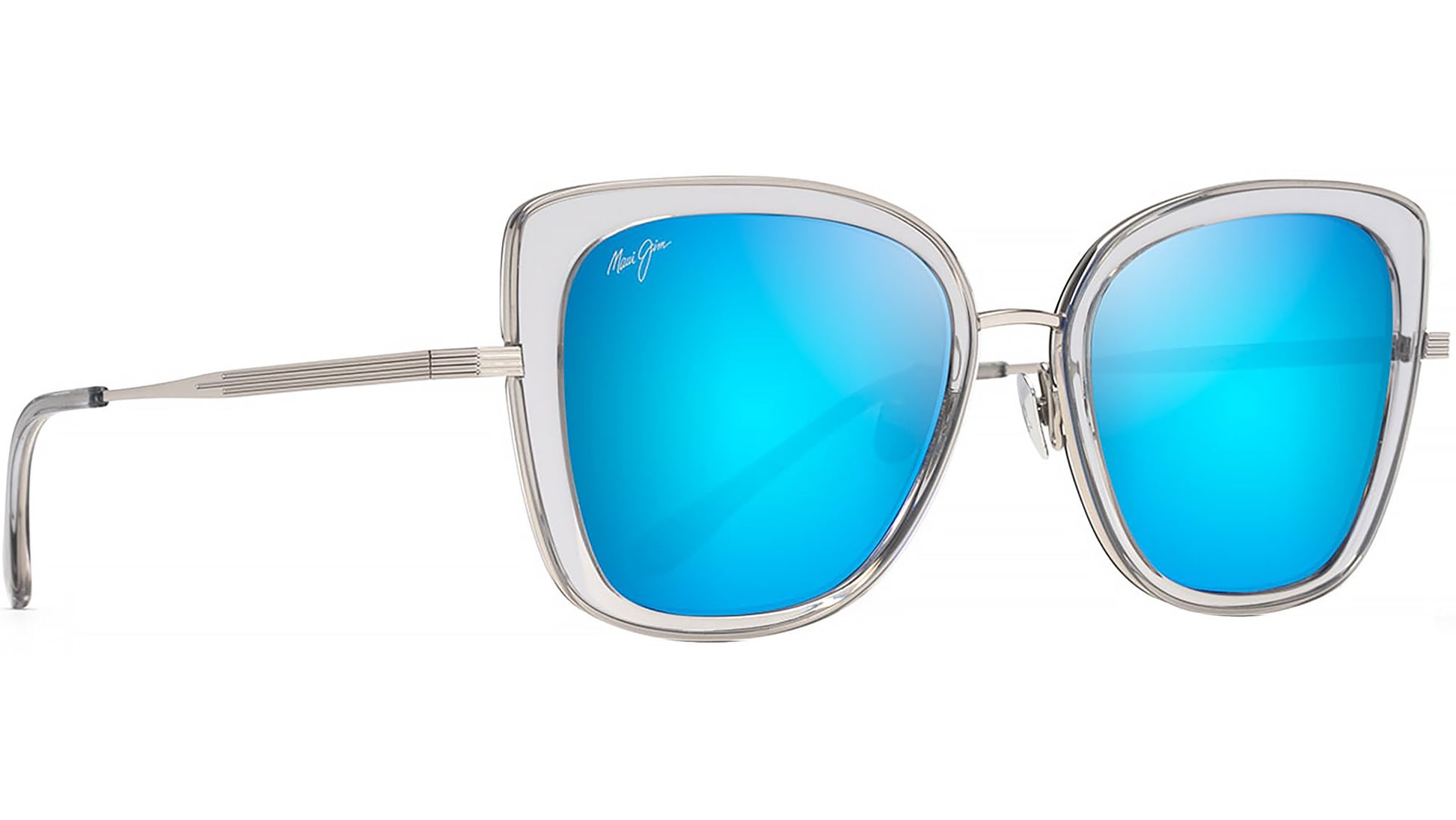 Maui Jim Violet Lake sunglasses model B843 color 11 translucent grey / silver. MauiBrilliant™ blue hawaii lenses. PolarizedPlus2® technology goes beyond shielding your eyes from glare and harmful UV to reveal and enhance the world's true vivid colors in detail.
