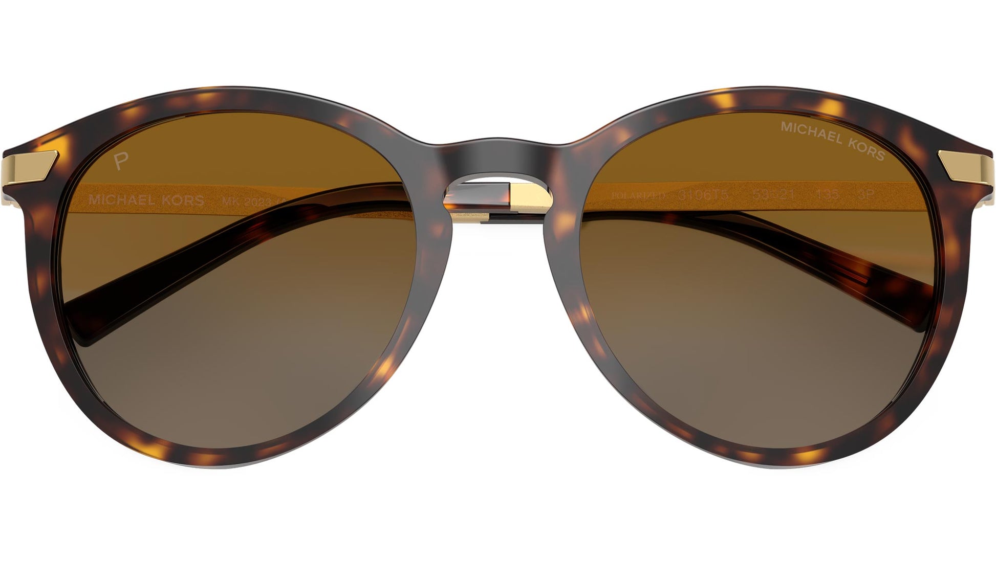 Michael Kors sunglasses for women model 2023 Adrianna III featuring dark tortoise full rim acetate frame and base 6 brown gradient polarized lenses. High bridge fit. Frame line: Sporty. Brand code: 0MK2023. Color code: 3106T5. Authorised Michael Kors Eyewear Online Reseller. Your glasses will come including the original case and accessories and will be covered by 12 month global warranty.