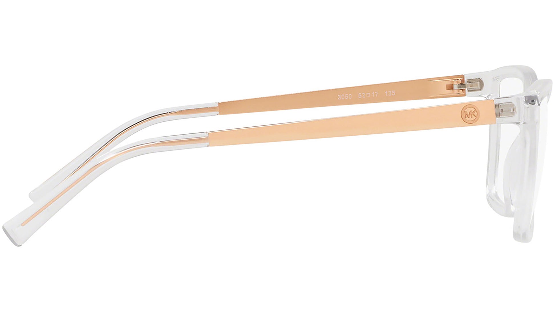 Michael Kors optical frame for women model 4058 Caracas featuring clear full rim injection frame and base 4 demo lens. High bridge fit. Frame line: Glam. Brand code: 0MK4058. Color code: 3050. Authorised Michael Kors Eyewear Online Reseller. Your glasses will come including the original case and accessories and will be covered by 12 month global warranty.