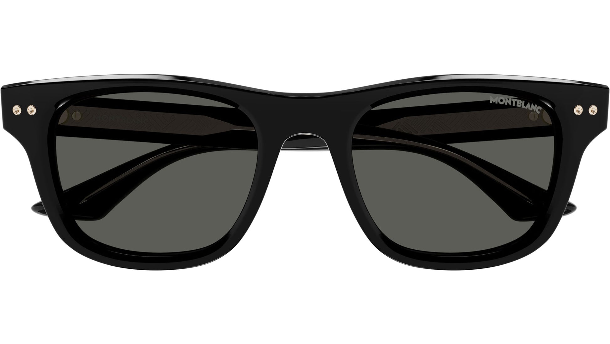 Montblanc Millennials collection sunglasses model MB0254S color code 005 featuring shiny solid black frame and polar solid grey lens.