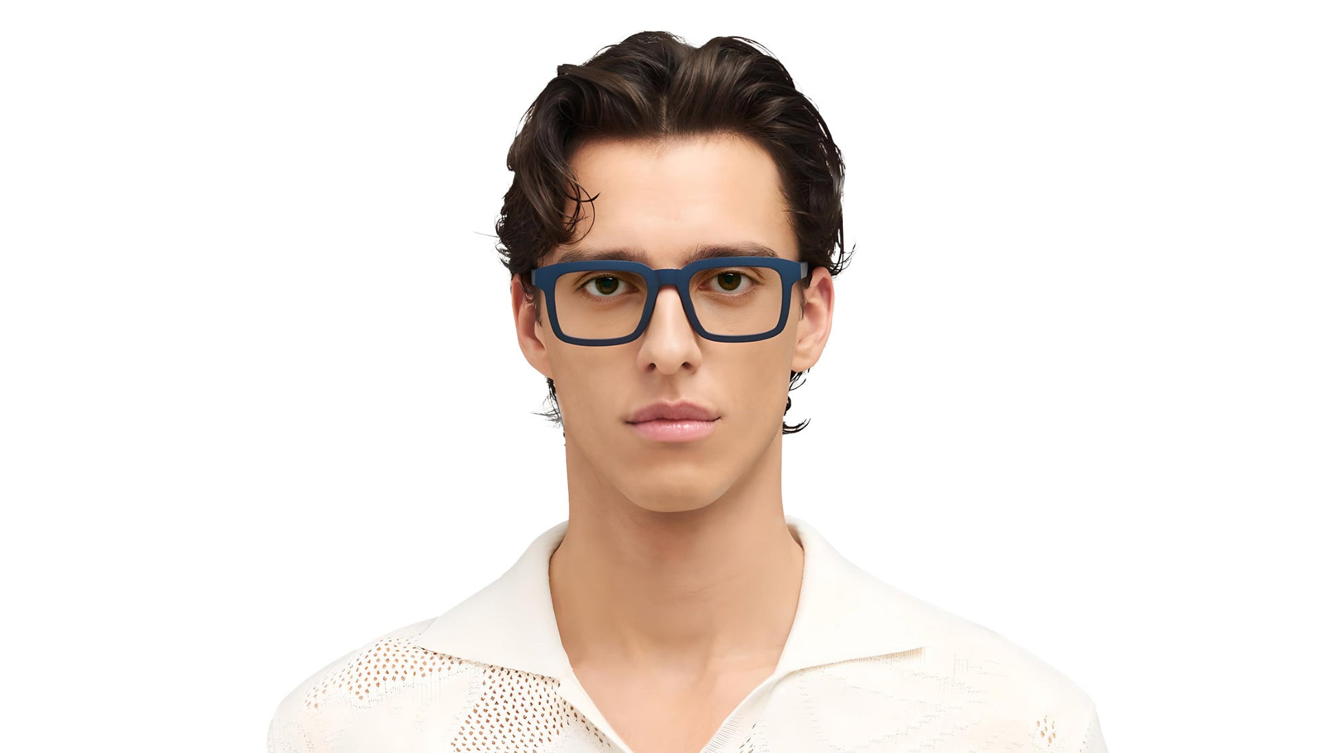 Mykita CANNA MD34 glasses for men, featuring indigo squared nylon frame and demo lenses. Eyewear design at the cutting edge of 3D printing technology: MYKITA MYLON is shaping the future of high-tech eyewear through innovative engineering and trend-setting design. MYLON® is an award-winning material innovation from Modern Manufactory, renowned for its adaptability, exceptional lightness and durability. The range of styles expresses the design freedom of this high-tech material, including the HYBRID line, which combines stainless steel with MYLON® for a uniquely sophisticated aesthetic. Brand line: MYLON. Style code: 10084564. Color code: MD34. Made in Germany. Authorized Mykita online reseller. Your glasses will include the original case and accessories and are covered by a 12-month global warranty.